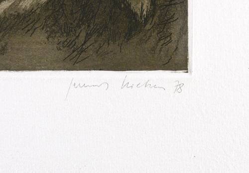 1978. Radierung / Aquatinta & Strichätzung, in Schwarzbraun, auf schwerem hellchamois Bütten. – Originale Künstlergrafik, von Gerenot Richter. – Auflage Exemplar Nr. 2/5. – 17,9 x 24,0 cm (Darstellung / Platte), 29 x 40 cm (Blatt).
