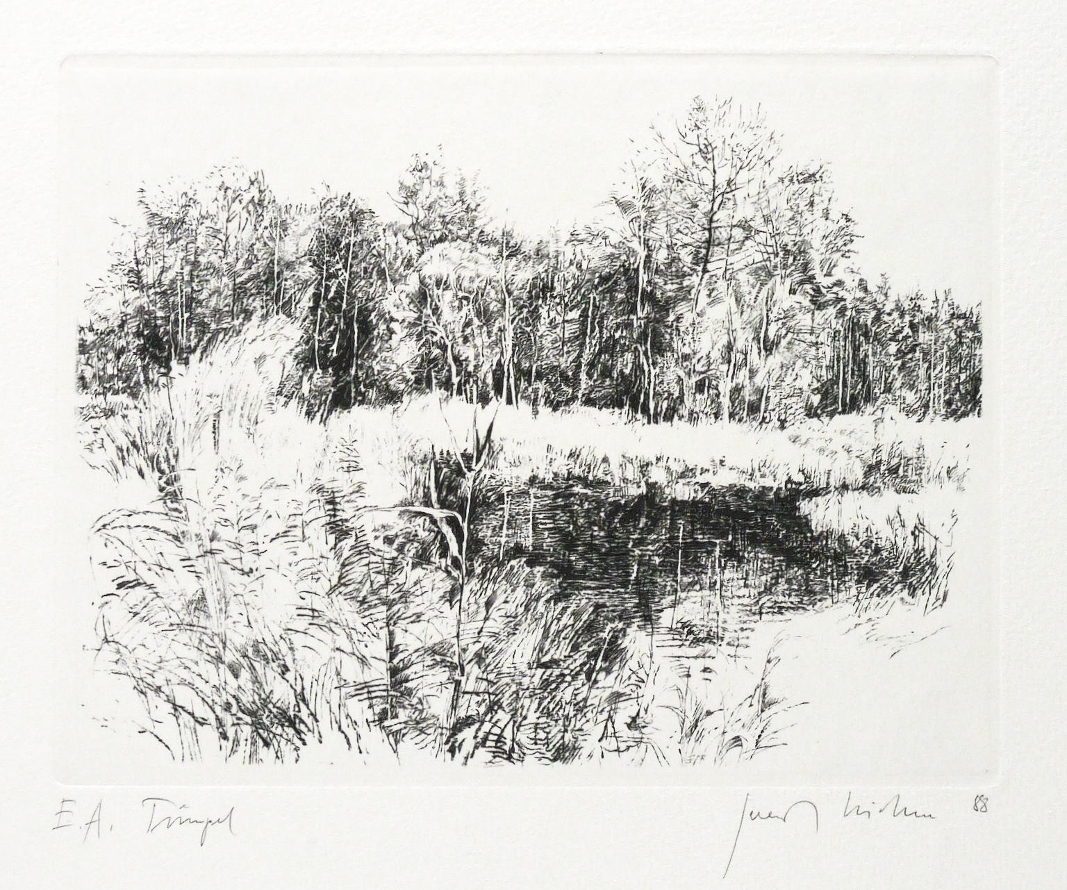 1988. Radierung / Kaltnadel, in Schwarz, auf hellem Weißenborn. – Originale Künstlergrafik, von Gerenot Richter. – Künstlerexemplar (e.a.). – 16,0 x 21,0 cm (Darstellung / Druckbild), 50 x 38 cm (Blatt).