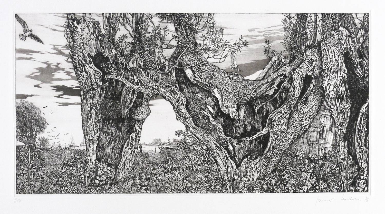 1978. Radierung / Aquatinta, Strichätzung & Kaltnadel, in Schwarz, auf schwerem hellchamois Hahnemühle. – Originale Künstlergrafik, von Gerenot Richter. – Auflage Exemplar Nr. 1/16. – 25,0 x 48,9 cm (Darstellung / Einfassungslinie), 57 x 76 cm (Blatt), 25,6 x 49,5 cm (Platte).