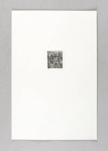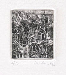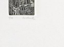 1982. Radierung / Strichätzung, in Schwarz, auf hellchamois Weißenborn. – Originale Künstlergrafik, von Gerenot Richter. – Auflage Exemplar Nr. 2/10. – 4,3 x 3,6 cm (Darstellung / Platte), 30 x 20 cm (Blatt).