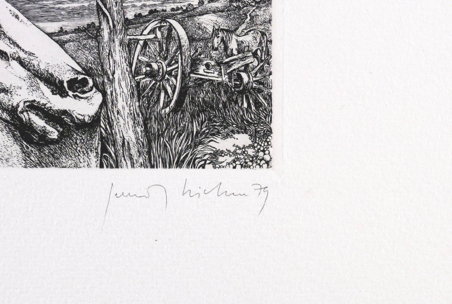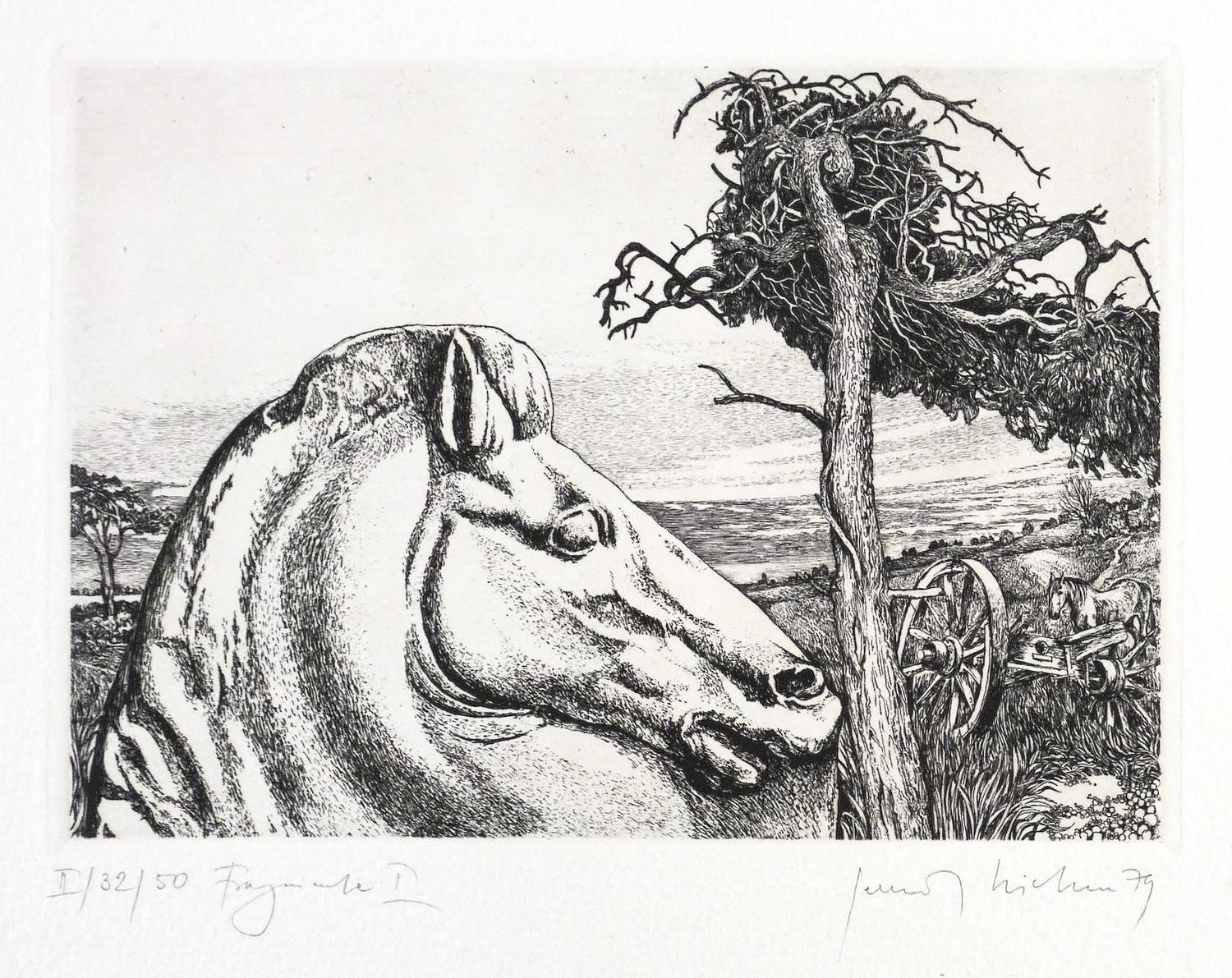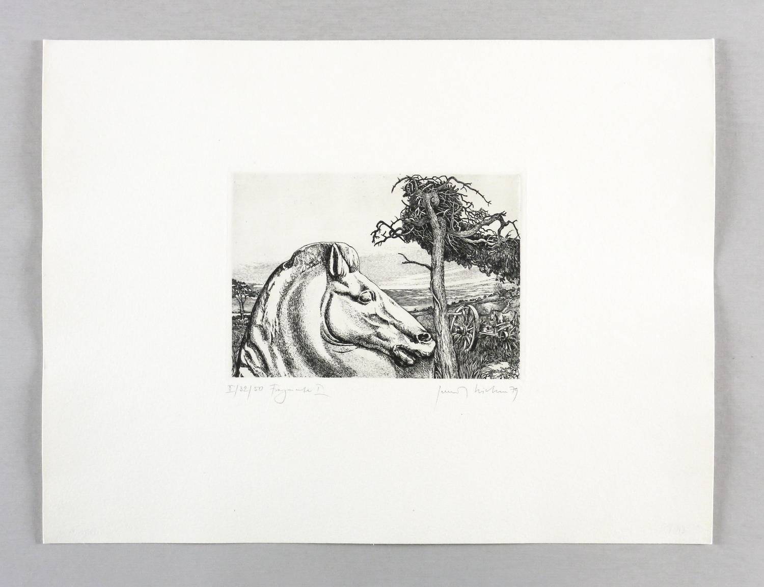 1979. Radierung / Strichätzung, in Schwarz, auf hartem hellchamois Weißenborn. – Originale Künstlergrafik, von Gerenot Richter. – Auflage Exemplar Nr. 32/50. – 12,5 x 17,8 cm (Darstellung / Platte), 30 x 40 cm (Blatt).