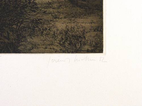 1982. Radierung / Aquatinta & Strichätzung, in Schwarzbraun, auf weichem chamois Weißenborn. – Originale Künstlergrafik, von Gerenot Richter. – Auflage Exemplar Nr. II/X. – 20,5 x 28,4 cm (Darstellung / Platte), 38 x 50 cm (Blatt).