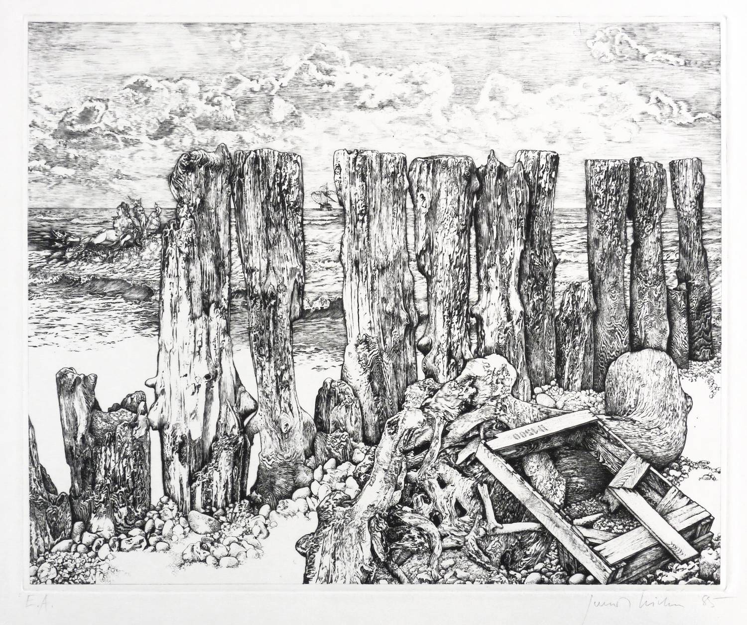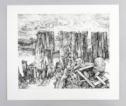 1985. Radierung / Kaltnadel, in Schwarz, auf weichem chamois Weißenborn. – Originale Künstlergrafik, von Gerenot Richter. – Künstlerexemplar (e.a.). – 29,5 x 35,9 cm (Platte), 37 x 43 cm (Blatt), 28,7 x 35,2 cm (Darstellung / Druckbild).