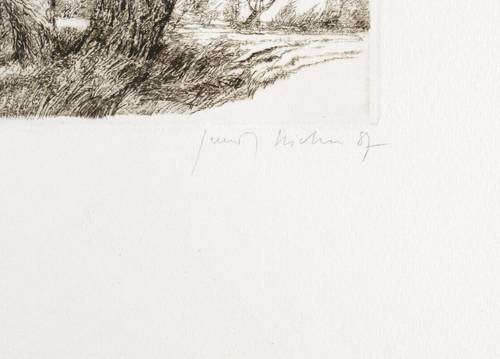 1987. Radierung / Kaltnadel, in Schwarz, auf hellchamois Weißenborn. – Originale Künstlergrafik, von Gerenot Richter. – Künstlerexemplar (e.a.). – 14,4 x 20,0 cm (Darstellung / Druckbild), 51 x 38 cm (Blatt).