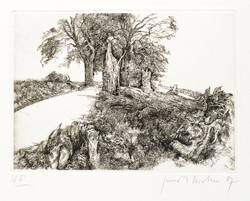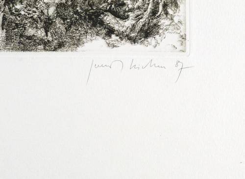 1987. Radierung / Kaltnadel, in Schwarz, auf hellchamois Weißenborn. – Originale Künstlergrafik, von Gerenot Richter. – Auflage Exemplar Nr. I/V. – 14,9 x 21,1 cm (Darstellung / Druckbild), 51 x 38 cm (Blatt).