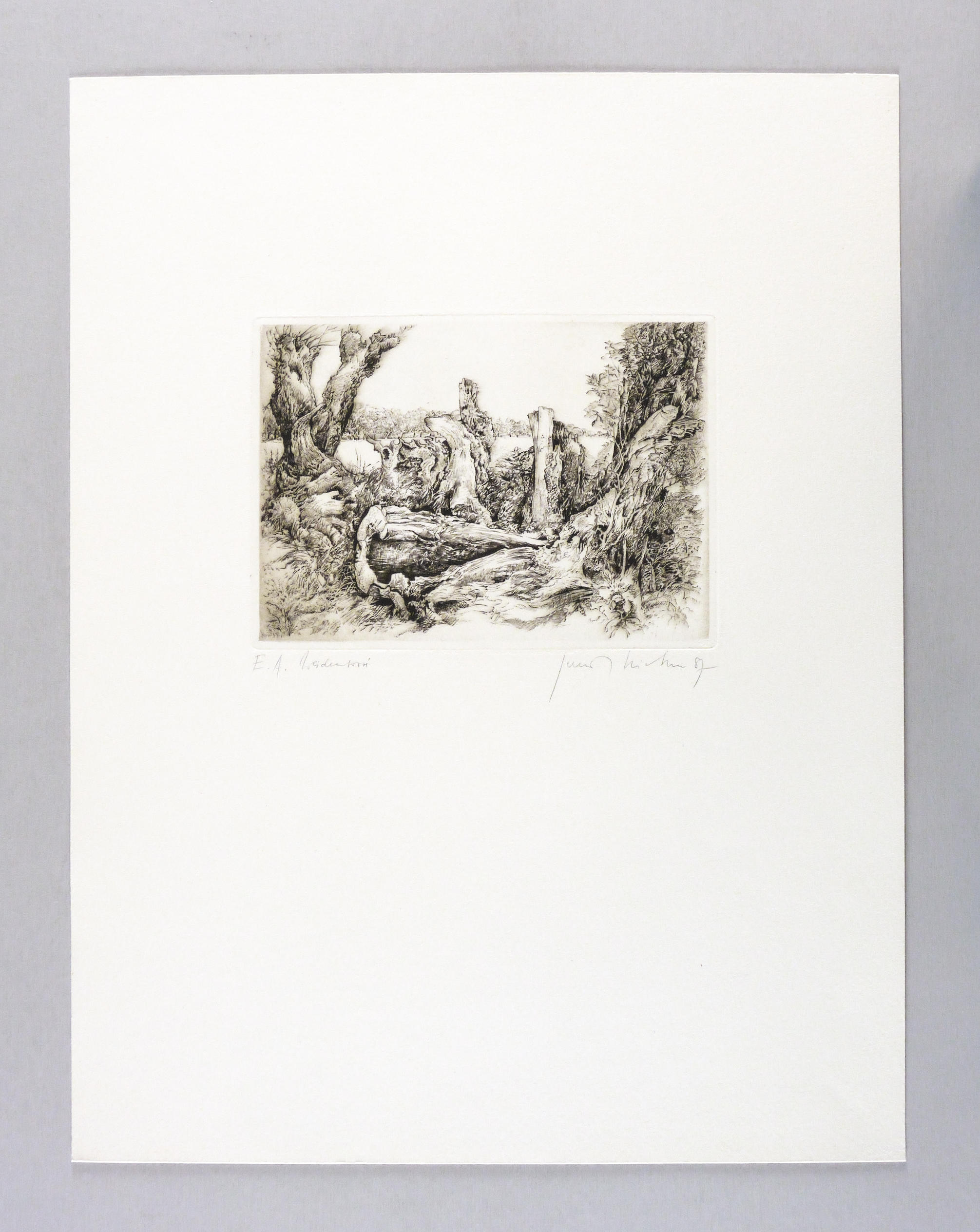 1987. Radierung / Kaltnadel, in Schwarz, auf hellchamois Weißenborn. – Originale Künstlergrafik, von Gerenot Richter. – Künstlerexemplar (e.a.). – 14,5 x 20,2 cm (Darstellung / Druckbild), 50 x 38 cm (Blatt).