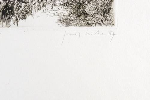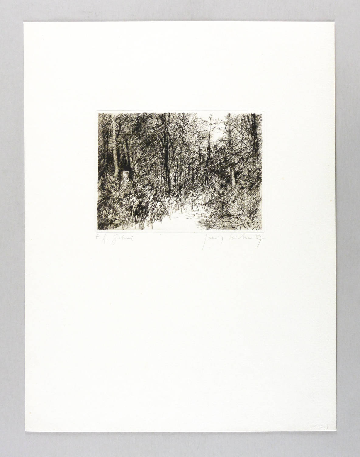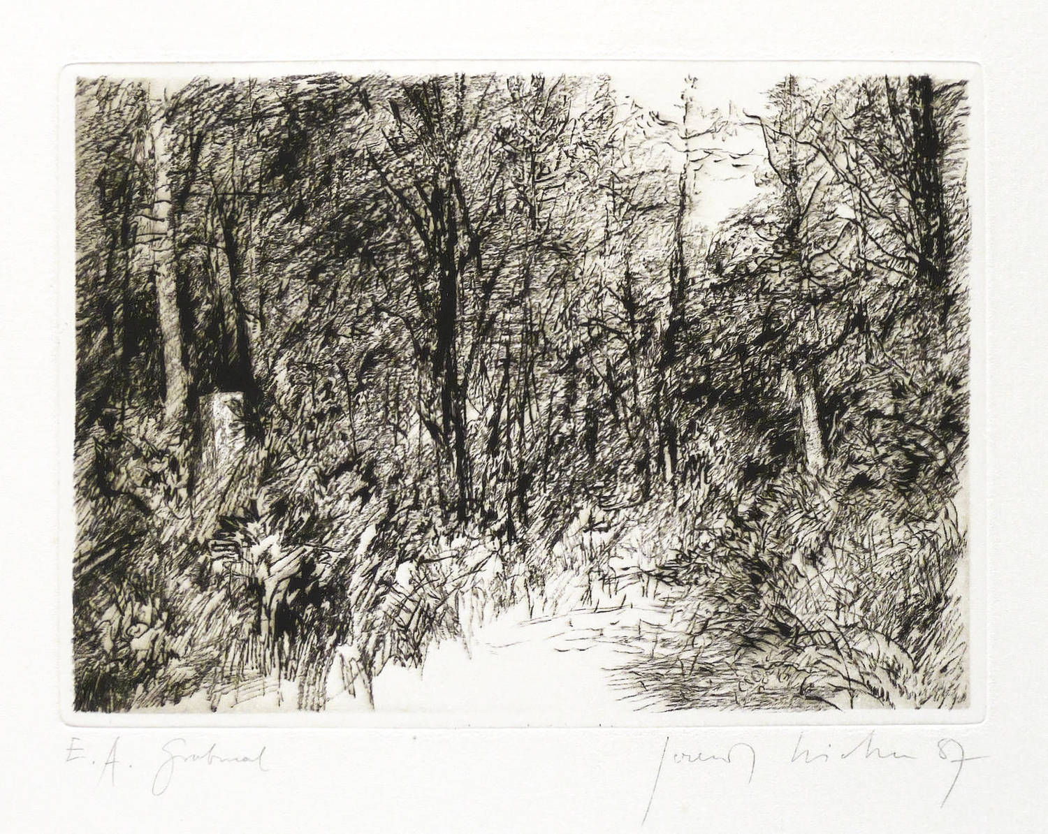 1987. Radierung / Kaltnadel, in Schwarz, auf hellchamois Weißenborn. – Originale Künstlergrafik, von Gerenot Richter. – Künstlerexemplar (e.a.). – 14,1 x 19,8 cm (Darstellung / Druckbild), 50 x 38 cm (Blatt).