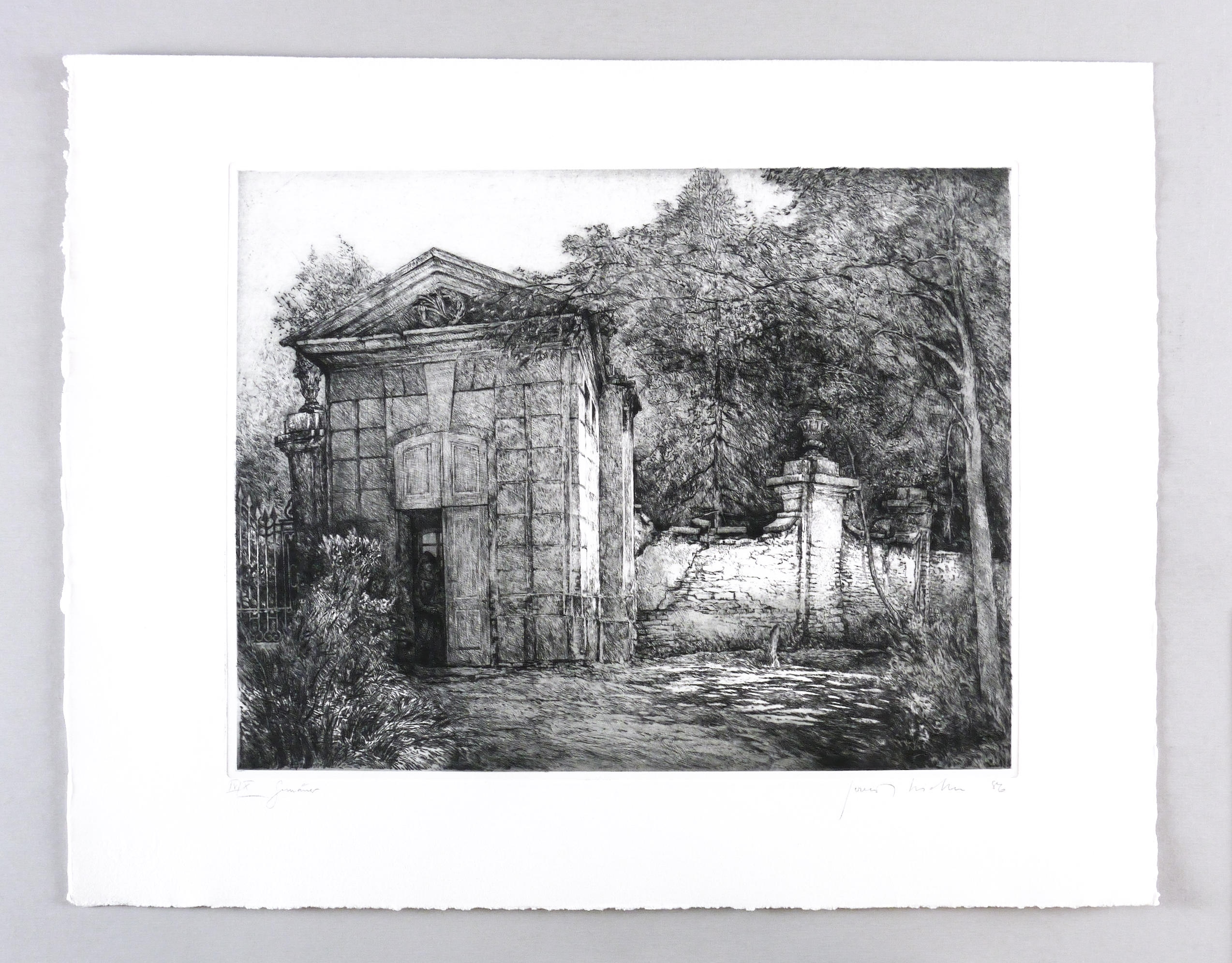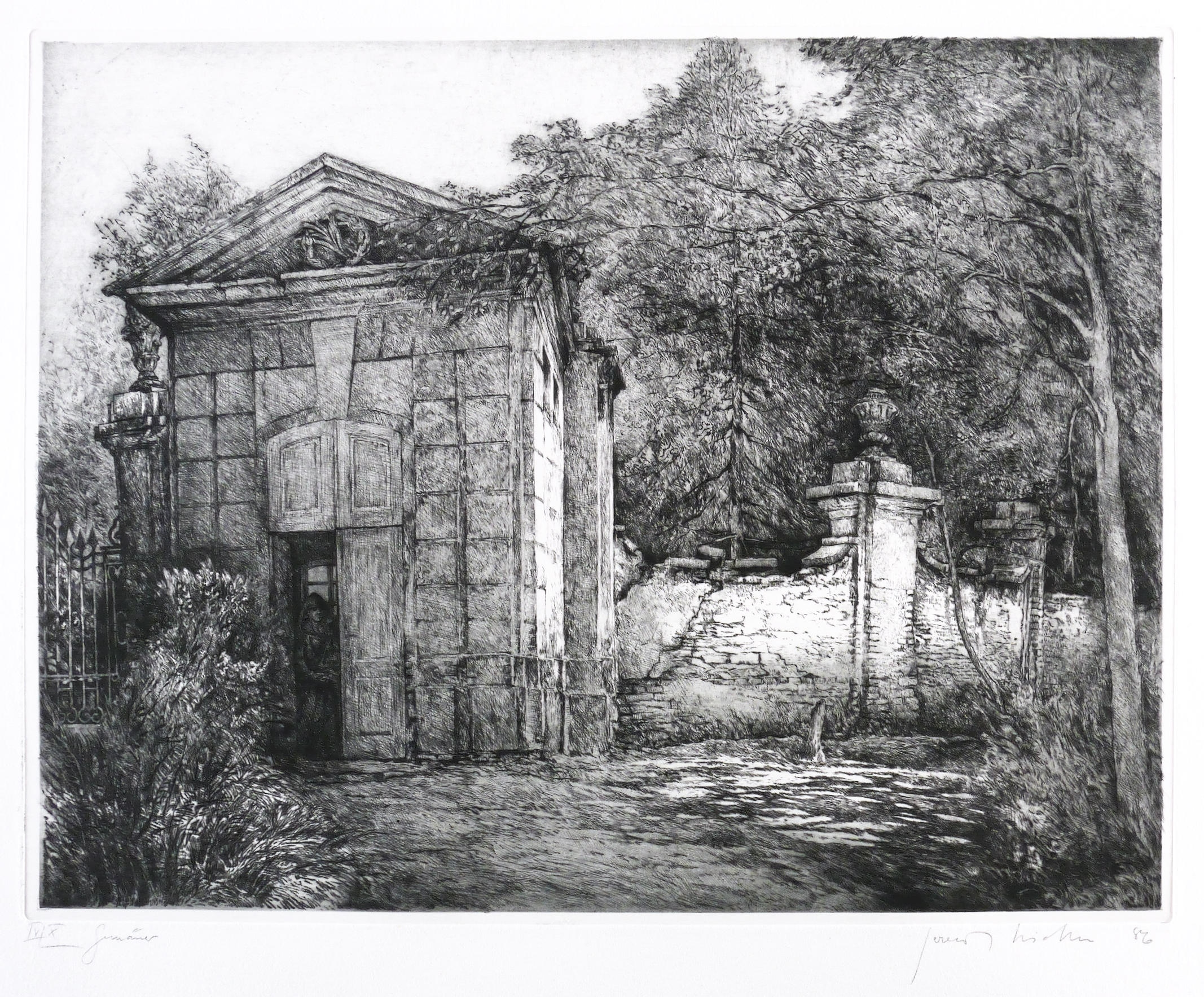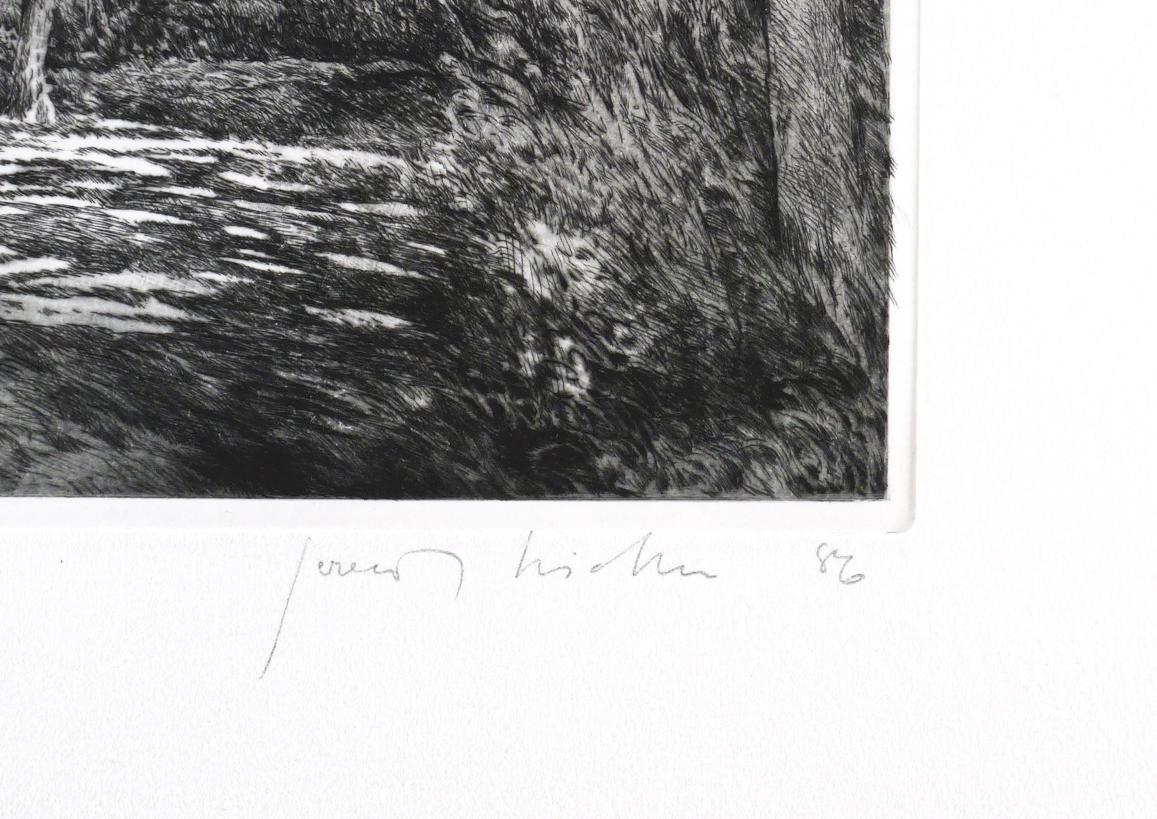 1986. Radierung / Kaltnadel, in Schwarz, auf schwerem hellchamois Hahnemühle. – Originale Künstlergrafik, von Gerenot Richter. – Auflage Exemplar Nr. IV/X. – 31,4 x 40,3 cm (Darstellung / Druckbild), 45 x 57 cm (Blatt), 32,3 x 41,2 cm (Platte).
