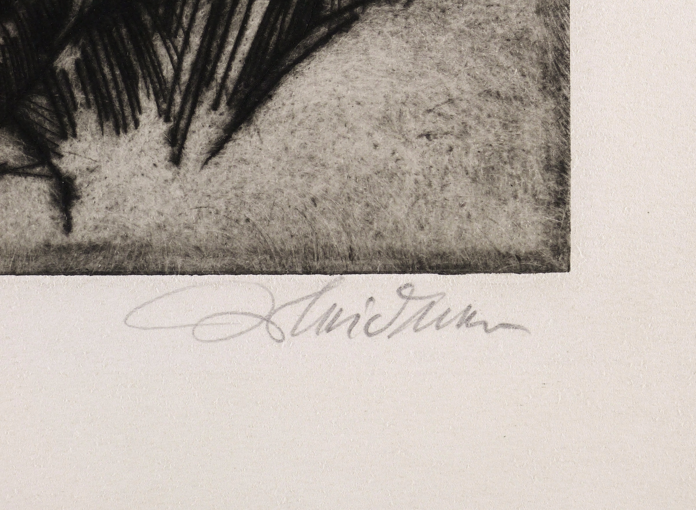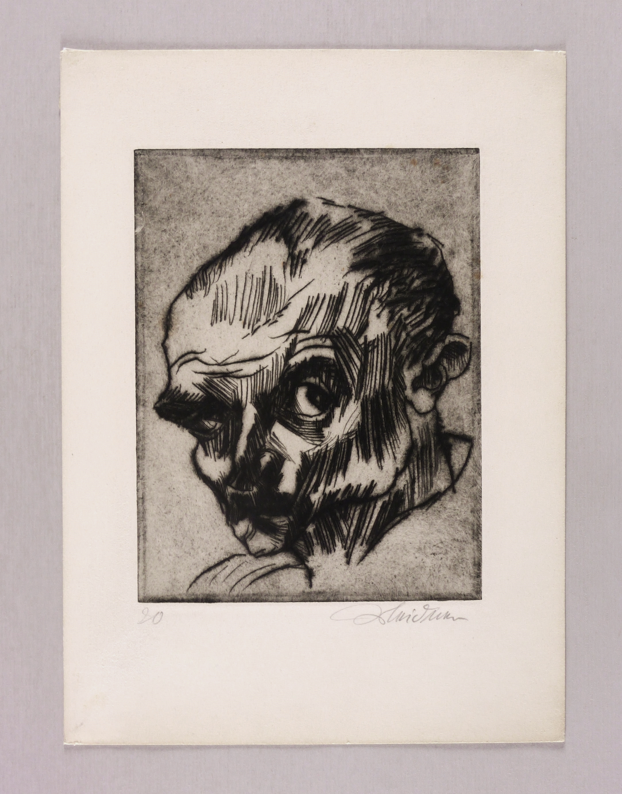 1920. Radierung / Kaltnadel, in Schwarz, mit Plattenton, auf gelbem Velinkarton. – Originale Künstlergrafik, von Ludwig Meidner. – Auflage 40 Exemplare. – 19,8 x 15,0 cm (Darstellung / Platte), 31 x 22 cm (Blatt).