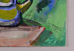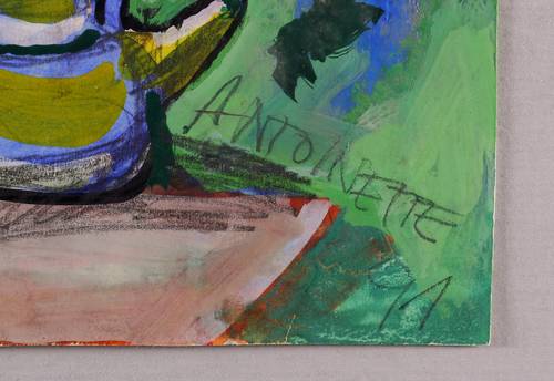 ANTOINETTE (*1956 Dresden, lebt und arbeitet in Berlin). Deutsche Malerin, Grafikerin und Performance-Künstlerin. 1973-75 Lehre als Schriftsetzerin. 1975/76 Studium Malerei an der Hochschule für Grafik und Buchkunst Leipzig (HGB). 1976 Geburt des Sohnes. 1979-84 Studium an der Kunsthochschule Berlin-Weißensee. Diverse Bühnenbilder, Performances, Installationen und Kunstprojekte. 1991 Meisterstudium bei Bernhard Heisig. Zahlreiche Aufträge für Wandgemälde. Später wieder Atelier in Berlin.