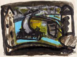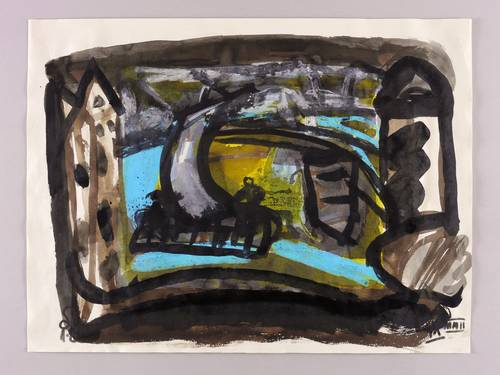 2002. Mischtechnik / Aquarell, Tusche & Deckweiß, auf festem hellchamois Maschinenbütten. – Originale Künstlergrafik, von Rainer Zille. – Unikat. – 45,0 x 60,0 cm (Darstellung / Blatt).