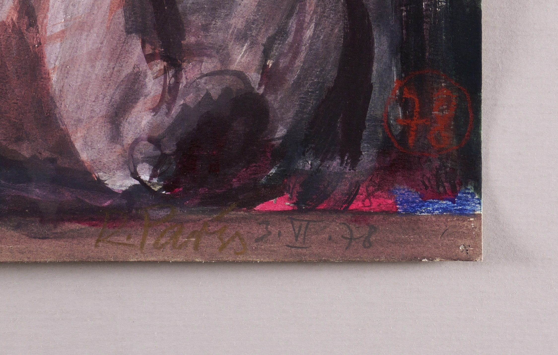 Rechts unten in Farbkreide und Bleistift signiert und datiert: ″R. Paris VI. 78″. Darüber nochmal in Farbkreide das Jahr: ″78″. Links in schwarzer Tusche Werknummer: ″4 I″. – Provenienz: Sammlung Erhard Frommhold, Dresden. – Sehr guter Zustand.