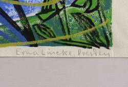Rechts unten in Bleistift signiert: ″Erna Lincke, Dresden″. Links Auflagenbezeichnung: ″Probedruck″. Dazu weiter: ″Handdruck″. Mittig Titel: ″Frühlingsskizze″. In der Darstellung links unten in Schablonendruck Monogramm: ″EL″. – Originalrandiges unbeschnittenes Exemplar. In den seitlichen Rändern leicht griffspurig, bisweilen unmerklich fleckig. Insgesamt aber doch guter Zustand.