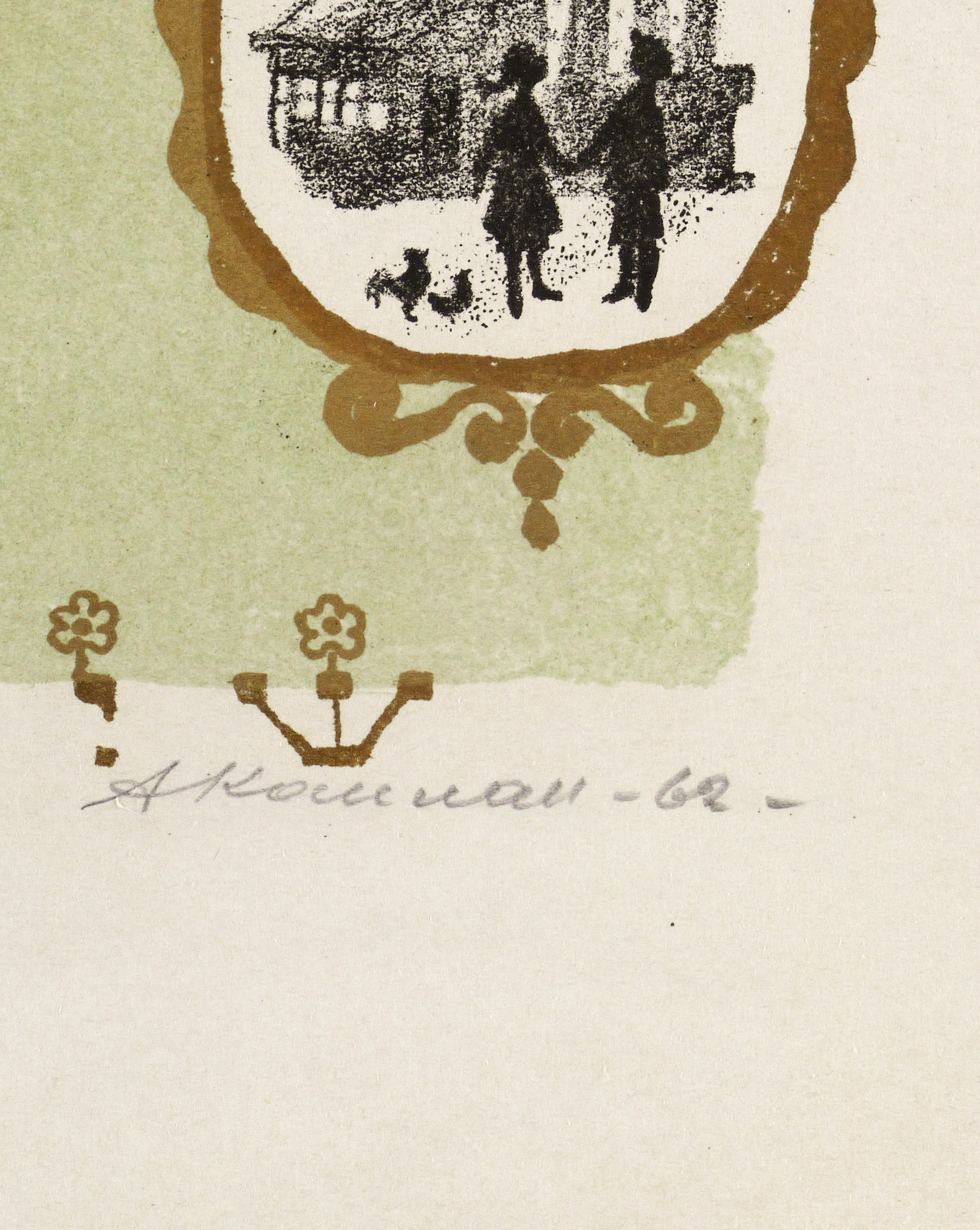 1961/1962. Farblithografie / Pinsel- & Kreidelithografie, partiell gespritzt, in Schwarz, Grün & Gold, auf gelblichem Velin. – Originale Künstlergrafik, von Anatoli Kaplan. – Auflage 125 Exemplare. – 48,2 x 33,8 cm (Darstellung / Druckbild), 57 x 44 cm (Blatt).