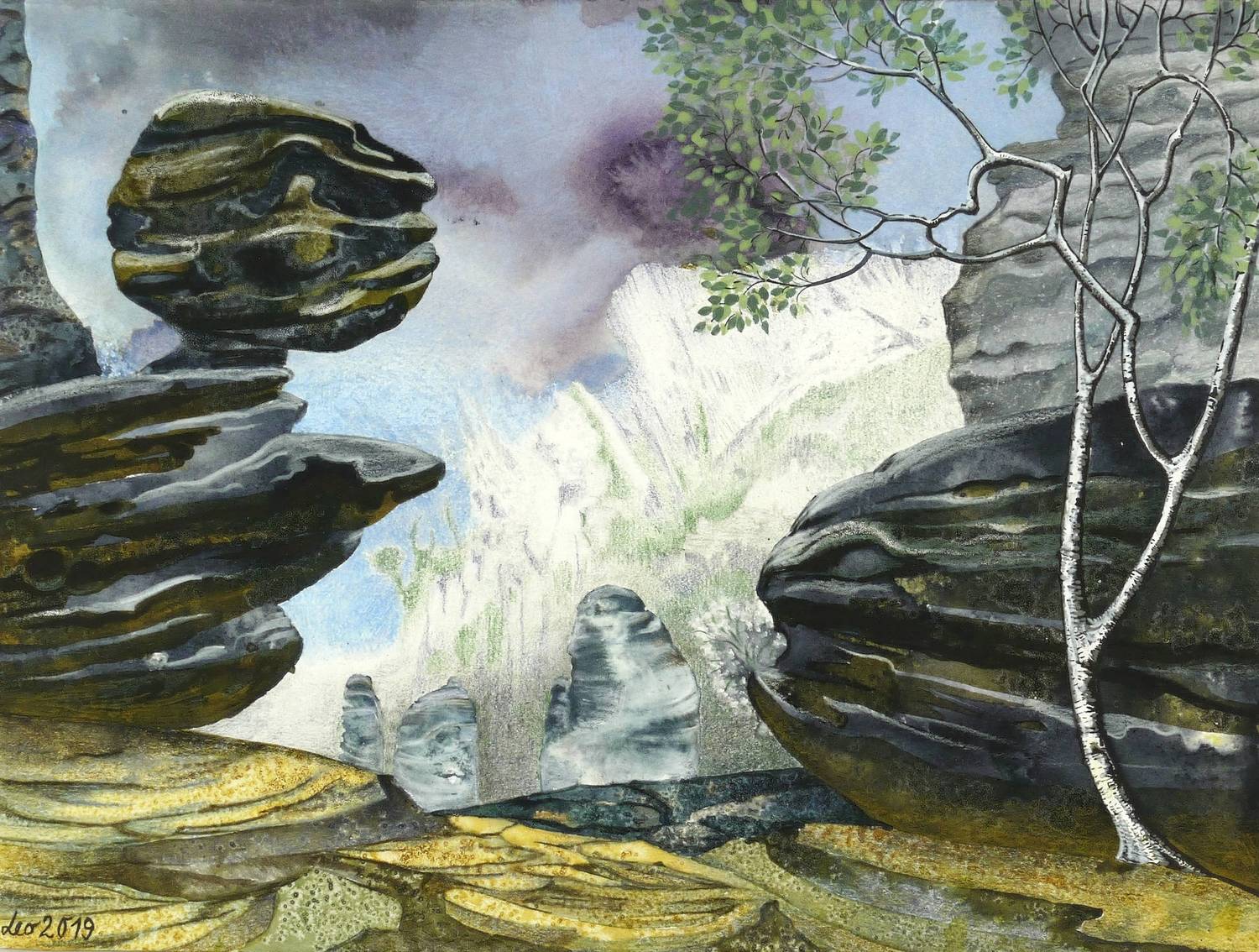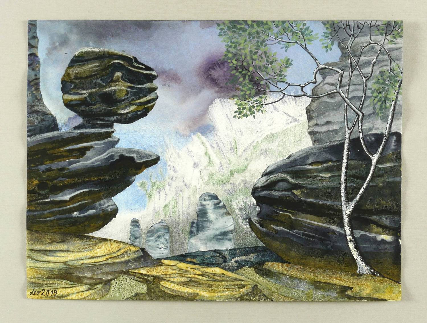 2019. Mischtechnik / Aquarellfarbe & farbige Tusche, auf Aquarellpapier. – Originale Künstlergrafik, von Leonore Adler. – Unikat. – 28,5 x 38,0 cm (Darstellung / Blatt).