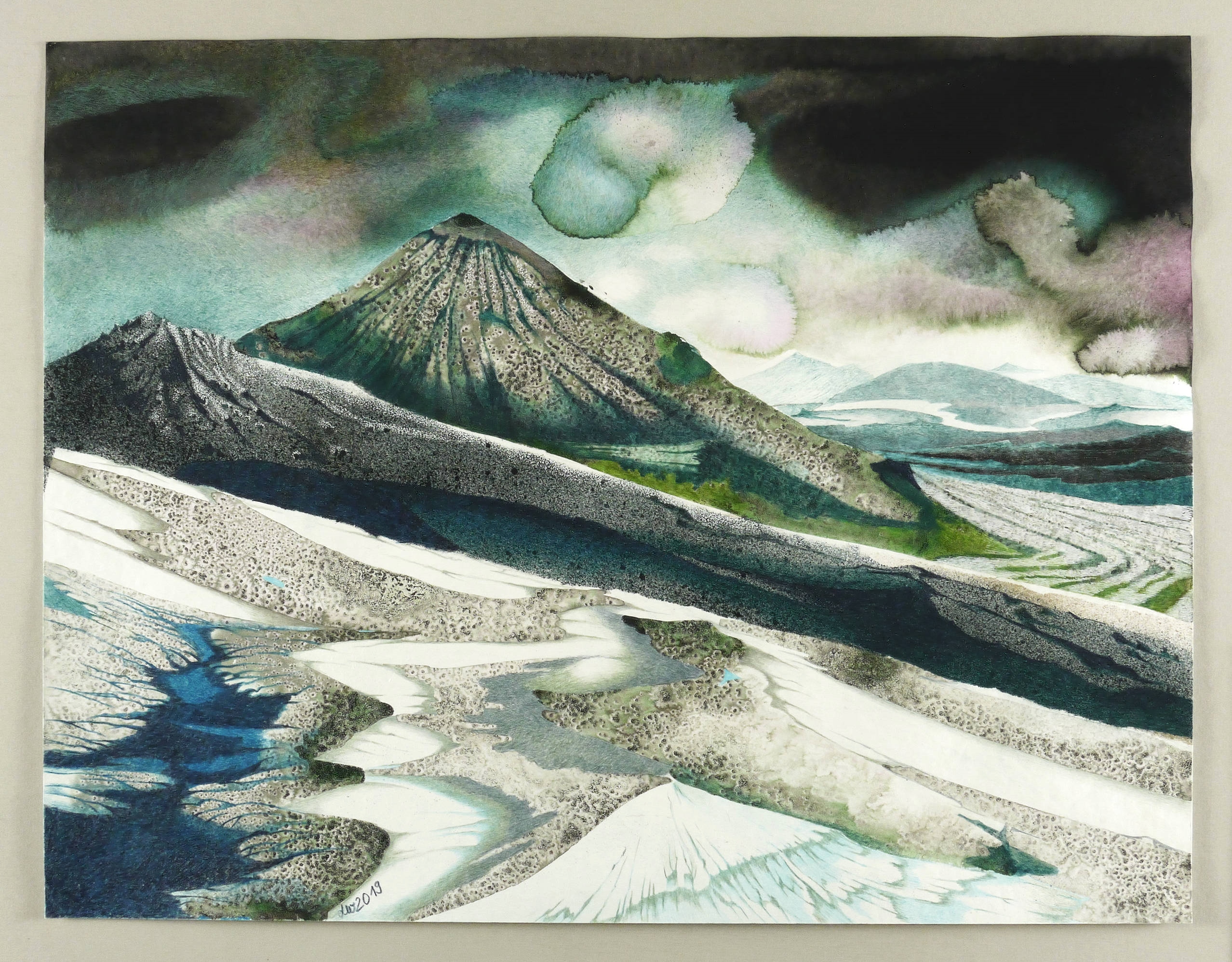 2019. Mischtechnik / Aquarellfarbe & farbige Tusche, auf Aquarellpapier. – Originale Künstlergrafik, von Leonore Adler. – Unikat. – 50,0 x 65,0 cm (Darstellung / Blatt).