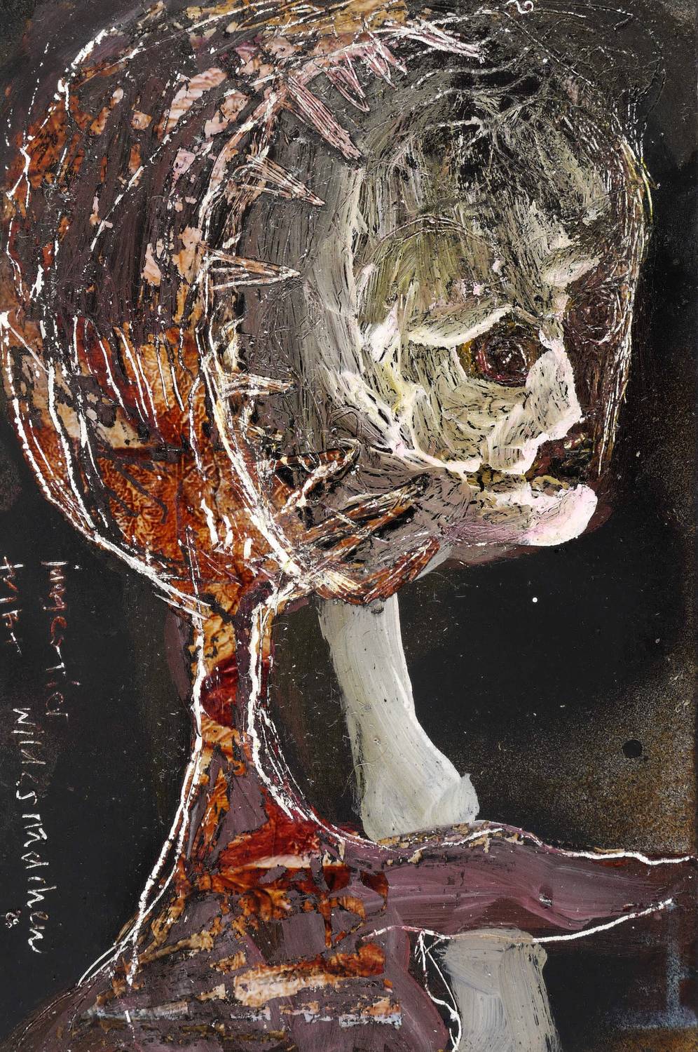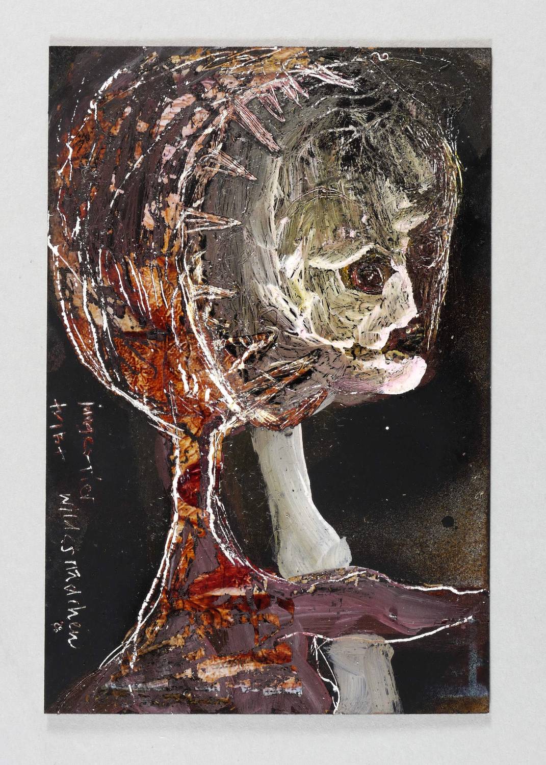1994. Mischtechnik / Gouache & Tusche, partiell geschabt, auf Fotoabzug. – Originale Künstlergrafik, von Christiane Latendorf. – Unikat. – 15,3 x 10,2 cm (Darstellung / Blatt).