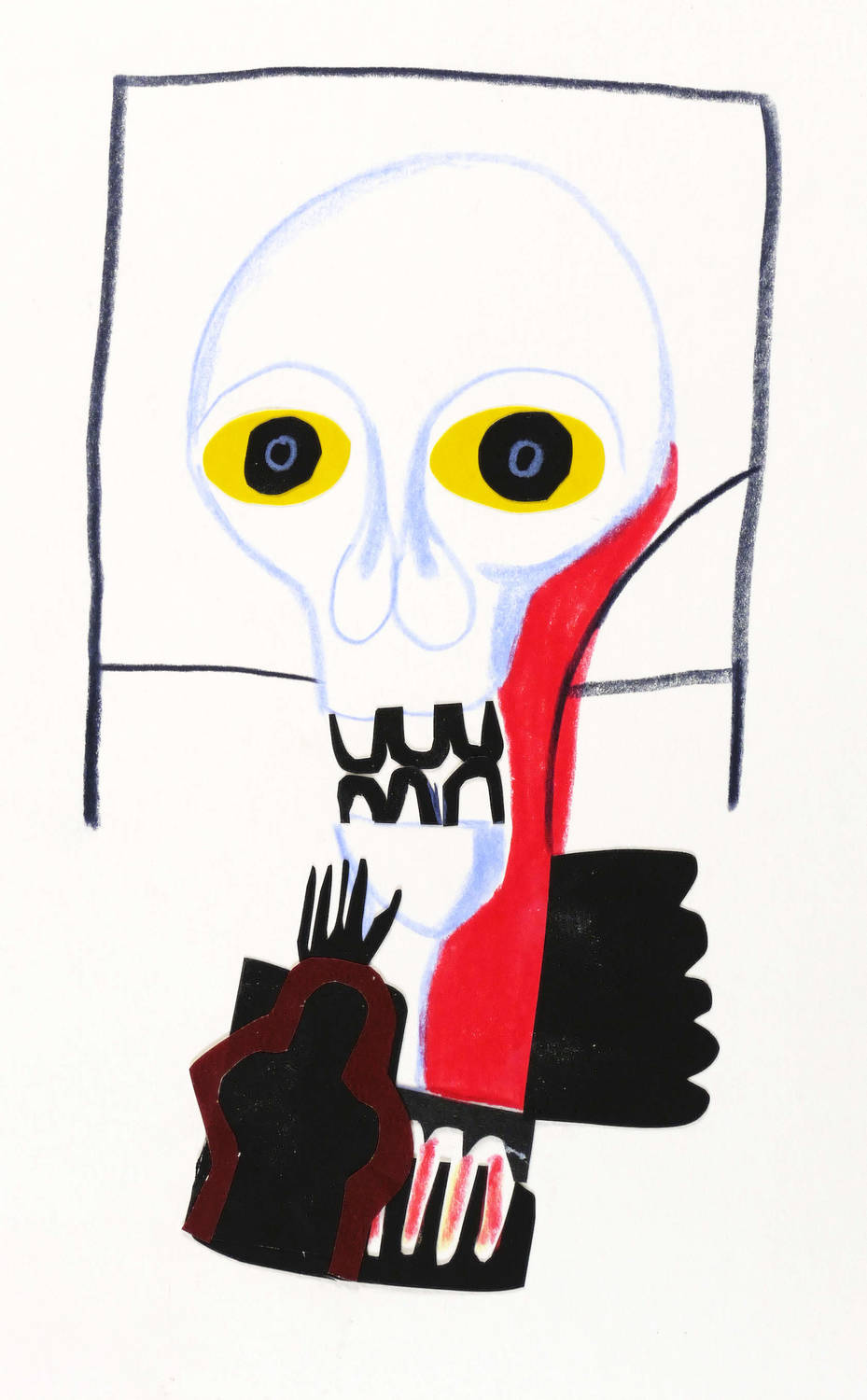 2002. Collage / Papiercollage & Fettkreide, auf Papier. – Originale Künstlergrafik, von Christiane Latendorf. – Unikat. – 16,5 x 9,0 cm (Darstellung), 21,0 x 14,7 cm (Blatt).