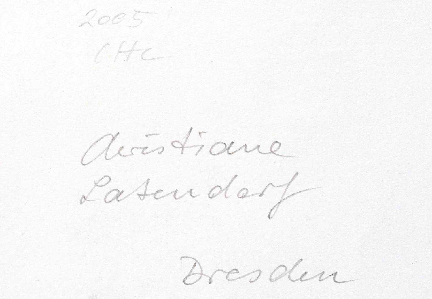 Christiane Latendorf Christiane Latendorf (*1968 Anklam, lebt und arbeitet in Dresden). Deutsche Malerin und Grafikerin. Lehre zur Apotheken-Facharbeiterin. 1988-91 Studium zur Pharmazie-Ingenieurin in Leipzig. Parallel dazu Abendstudium an der Hochschule für Grafik und Buchkunst Leipzig. 1992-97 Studium der Malerei und Grafik an der HfBK Dresden bei Ralf Kerbach. Bekanntschaft und künstlerischer Austausch mit Gerhard Kettner und Horst Leifer. Seit 1997 freischaffend als Malerin/Grafikerin tätig.