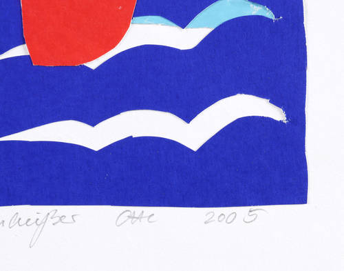 2005. Collage / Papiercollage, auf weißem Karton. – Originale Künstlergrafik, von Christiane Latendorf. – Unikat. – 21,0 x 15,0 cm (Darstellung / Blatt).