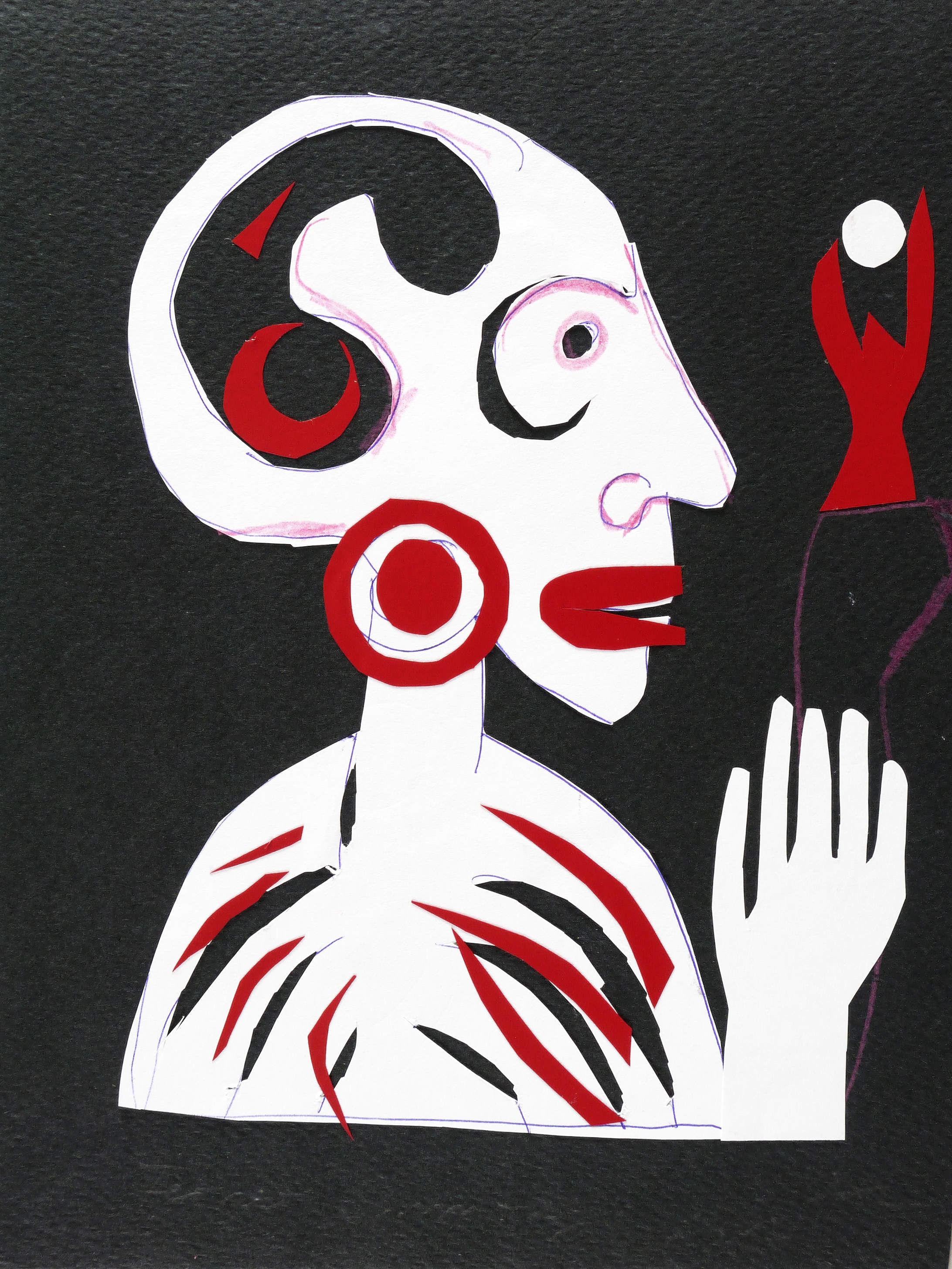 2017. Scherenschnitt, mit Farbstift & Kugelschreiber, auf schwarzem Karton. – Originale Künstlergrafik, von Christiane Latendorf. – Unikat. – 21,0 x 16,0 cm (Darstellung / Blatt).