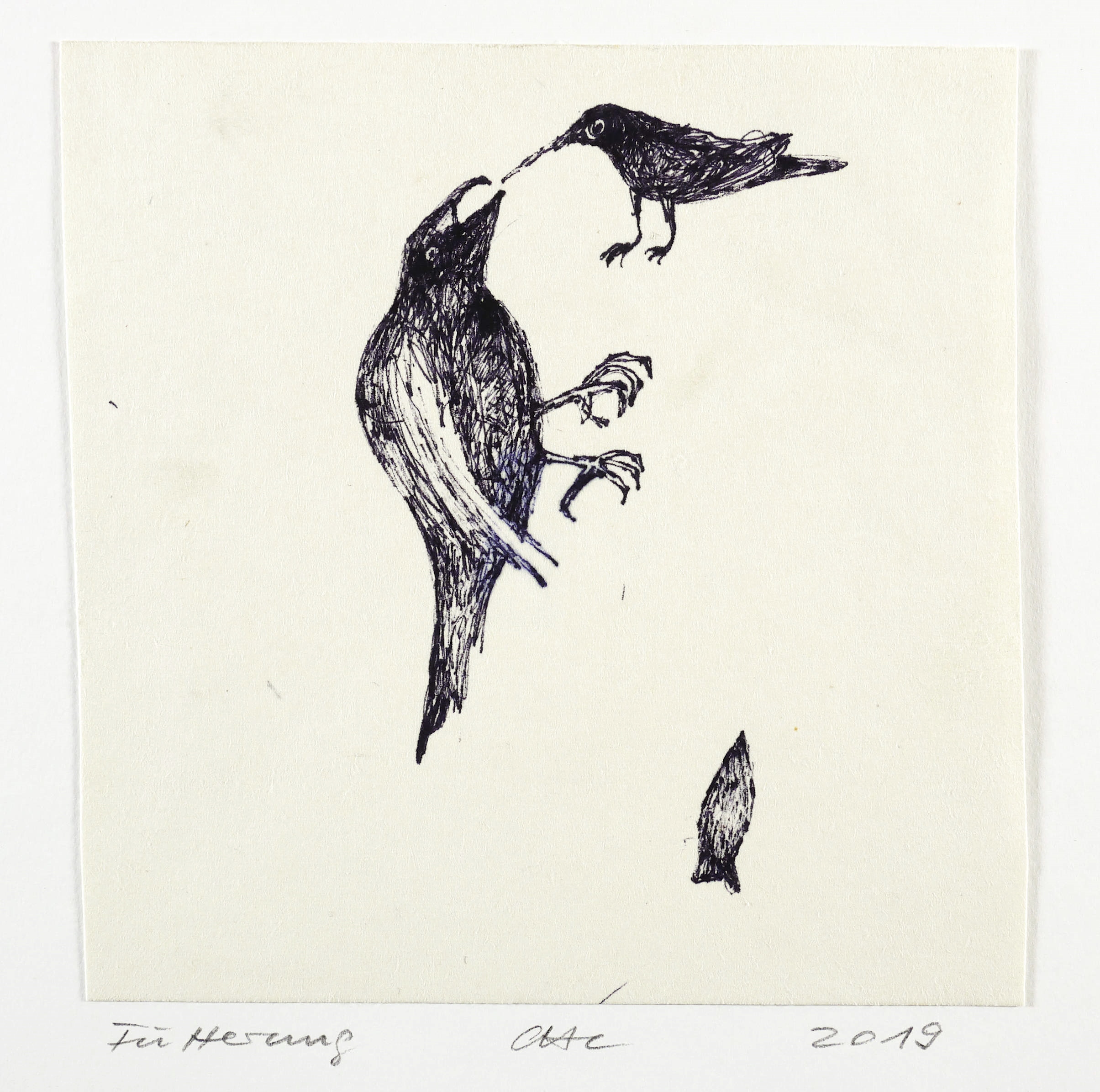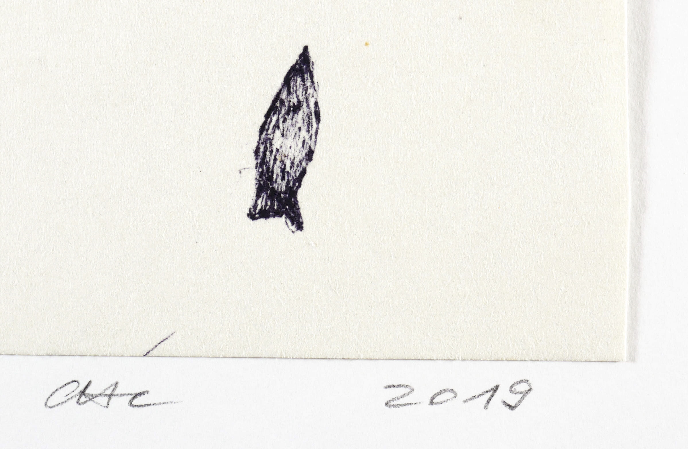 2019. Zeichnung / Faserstift, auf Papier. – Originale Künstlergrafik, von Christiane Latendorf. – Unikat. – 15,7 x 15,4 cm (Darstellung / Blatt), 18,5 x 20,0 cm (Trägerblatt).