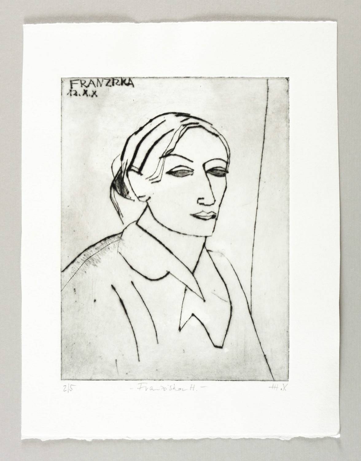 2010. Radierung / Kaltnadel, mit Plattenton, in Schwarz, auf Hahnemühle-Bütten. – Originale Künstlergrafik, von Helene Heyder. – Auflage Exemplar Nr. 2/5. – 19,9 x 15,0 cm (Darstellung / Platte), 28 x 21 cm (Blatt).