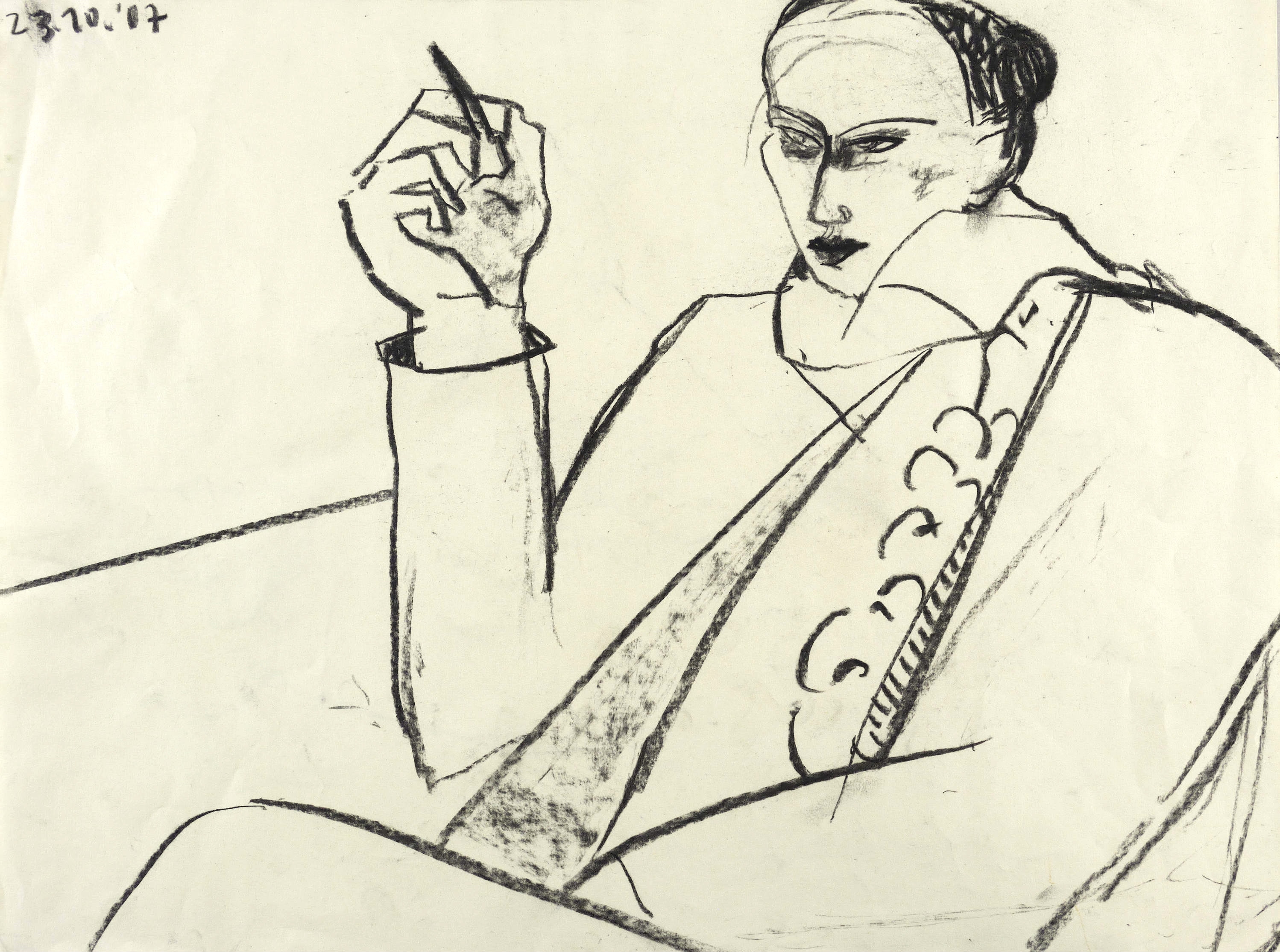 Links oben in Kohle datiert. – Leichte Atelierspuren. Guter Zustand.