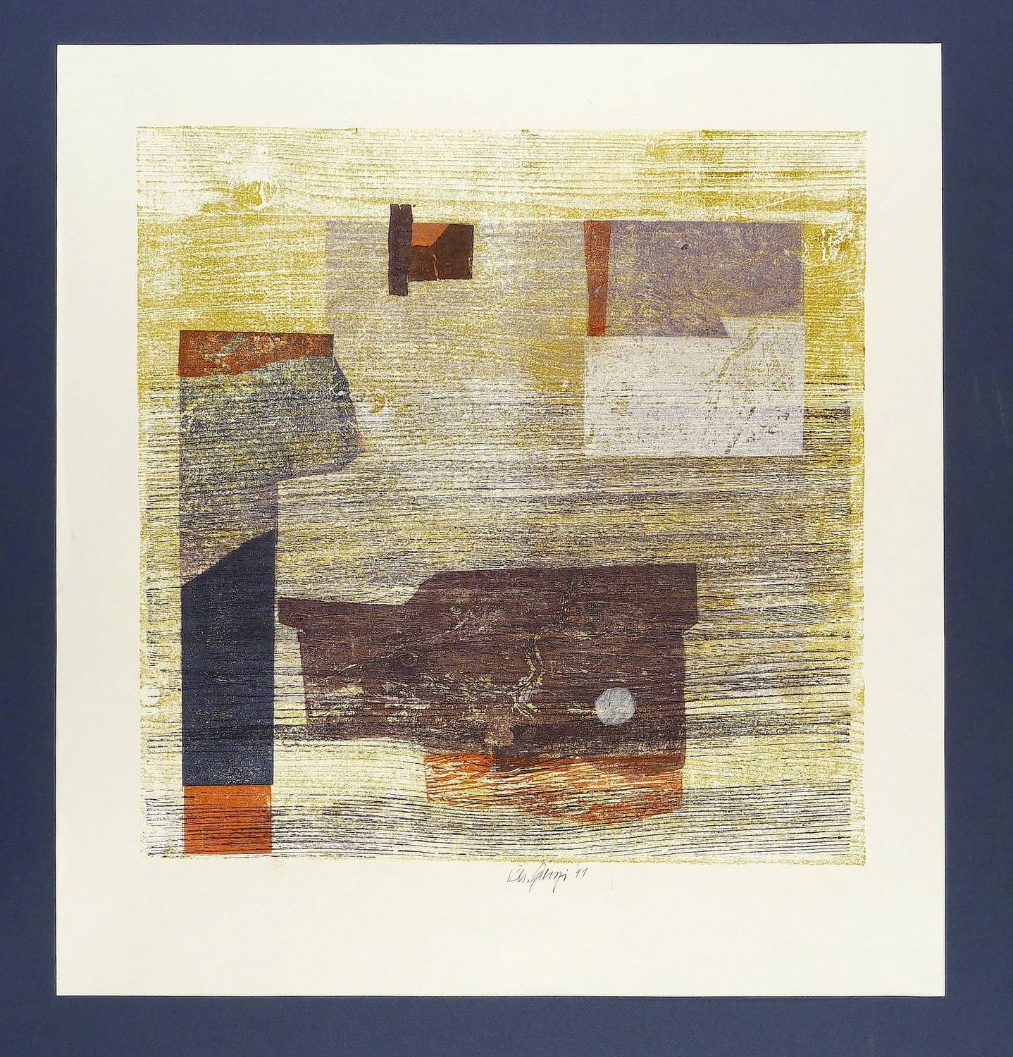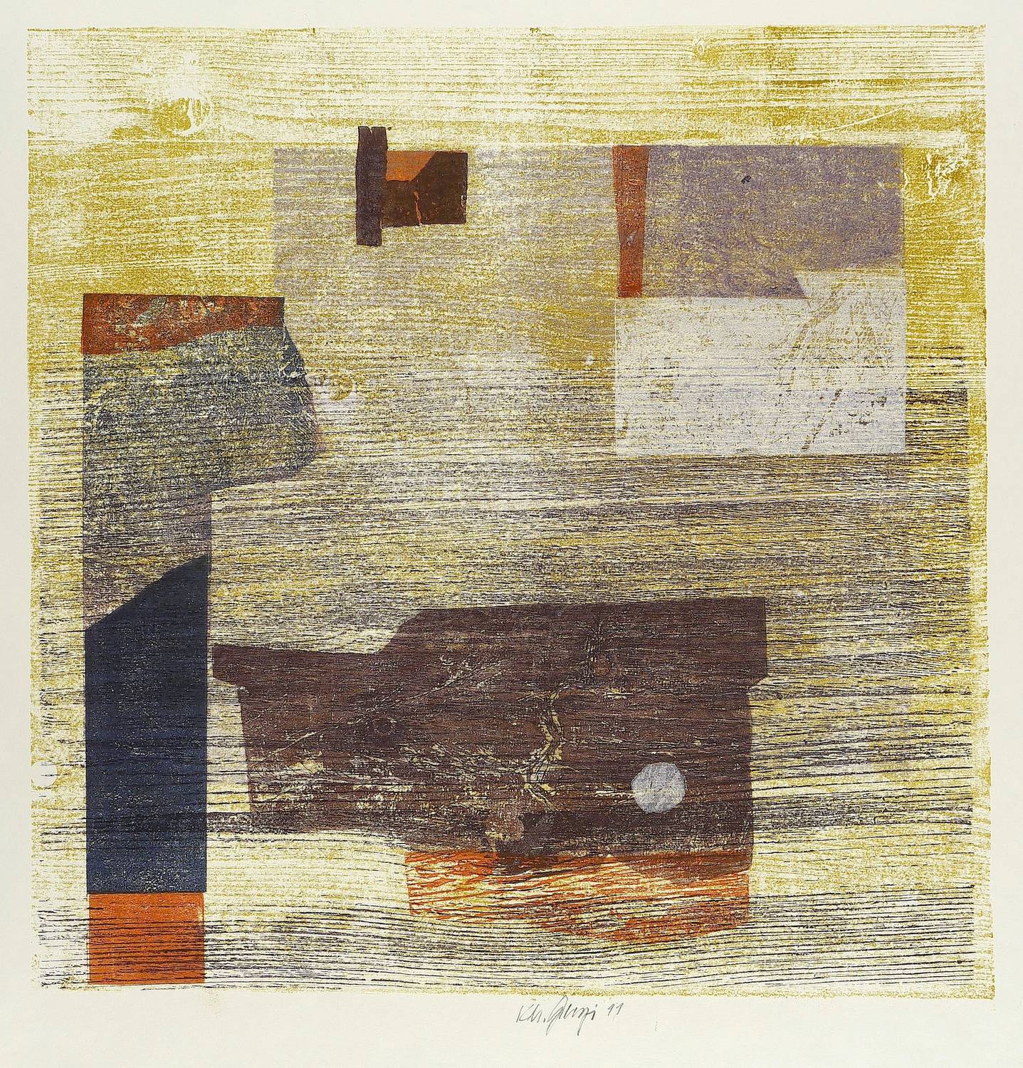 2011. Farbholzschnitt & Materialdruck, auf cremefarbenem Papier. – Originale Künstlergrafik, von Karlheinz Georgi. – Unikat. – 42,0 x 41,0 cm (Darstellung / Druckstock), 54 x 50 cm (Blatt).
