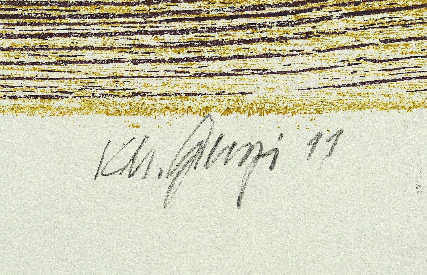 Unterhalb in Bleistift signiert und datiert. – Papier durchgehend leicht knickspurig. Obere rechte Ecke genickt. Sonst gut erhaltenes Exemplar.