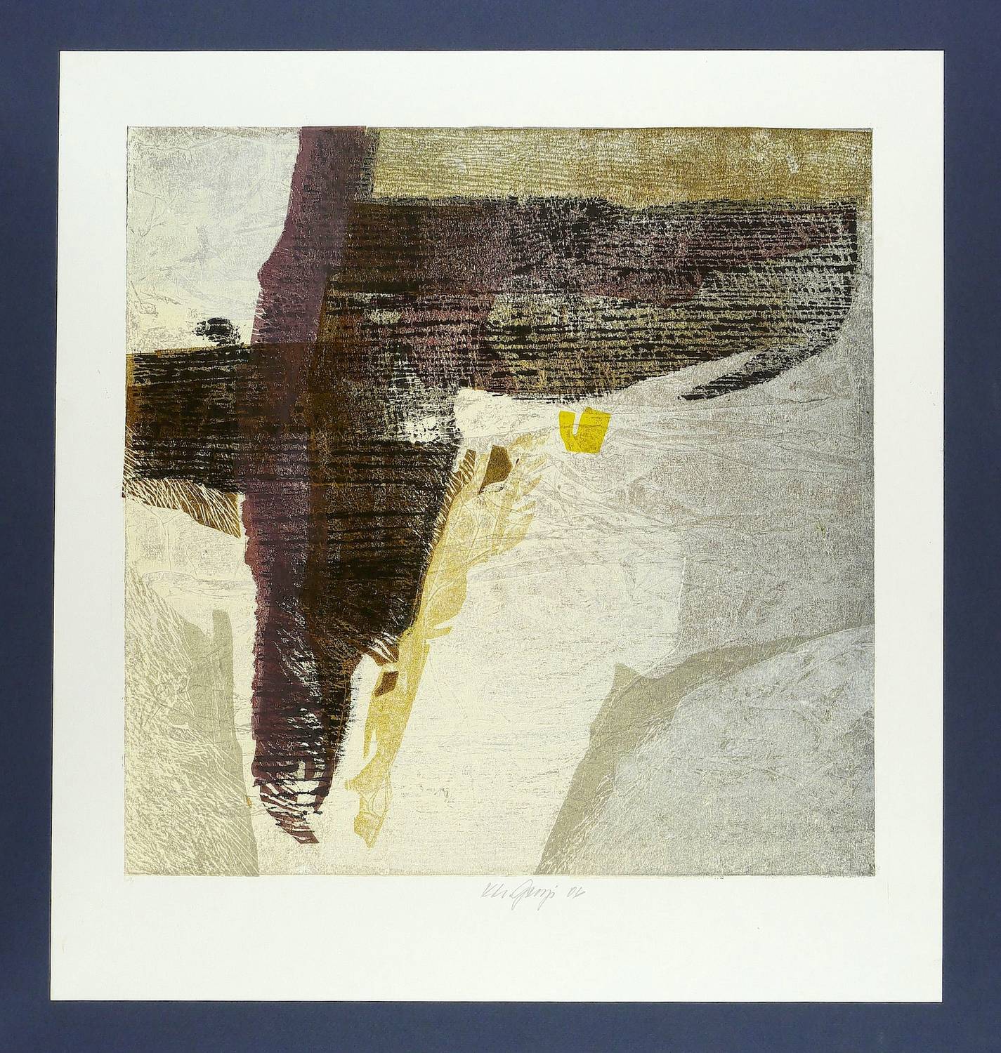 2006. Farbholzschnitt & Materialdruck, auf weißem Karton. – Originale Künstlergrafik, von Karlheinz Georgi. – Unikat. – 42,0 x 42,0 cm (Darstellung / Druckstock), 54 x 50 cm (Blatt).