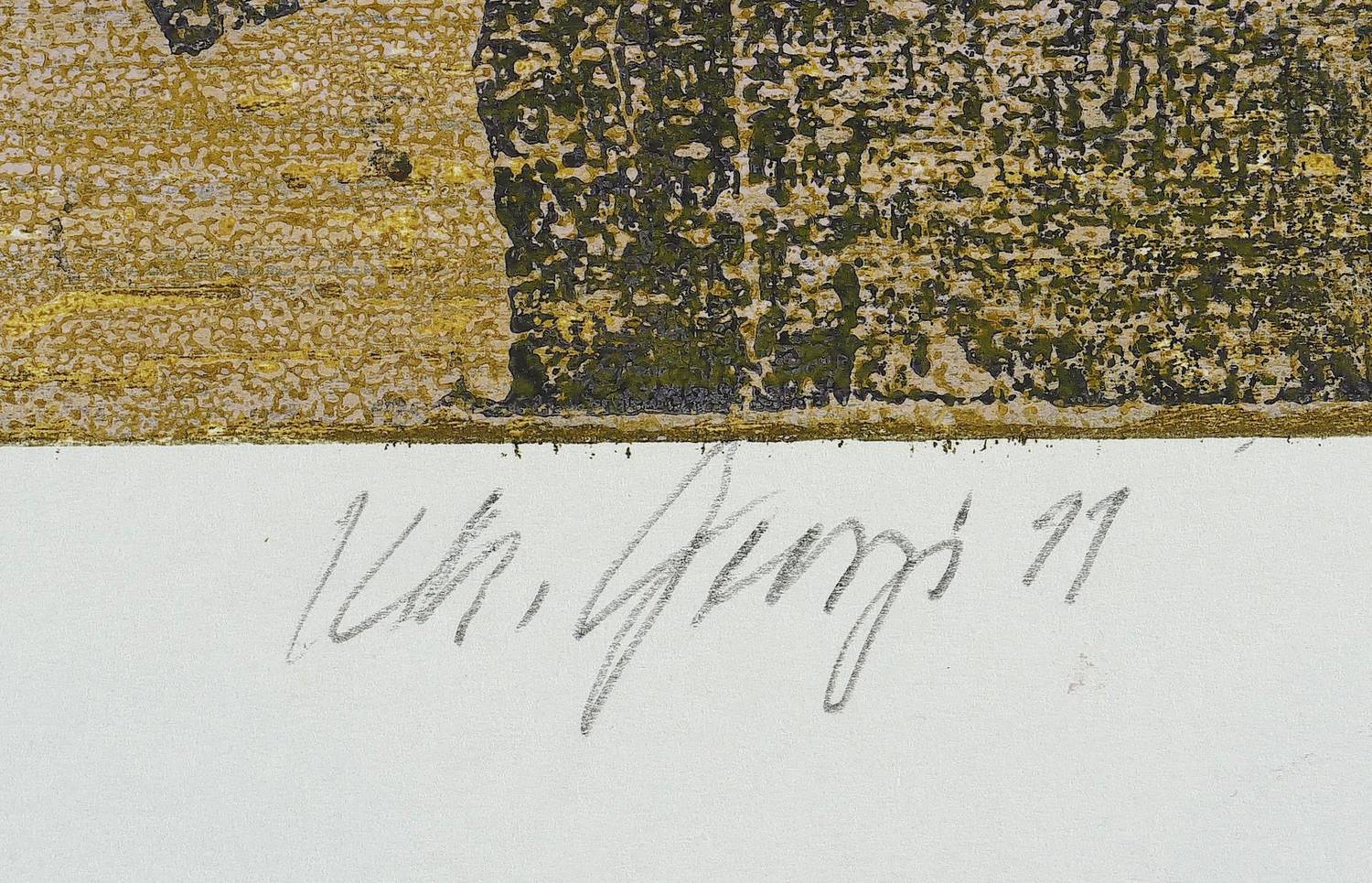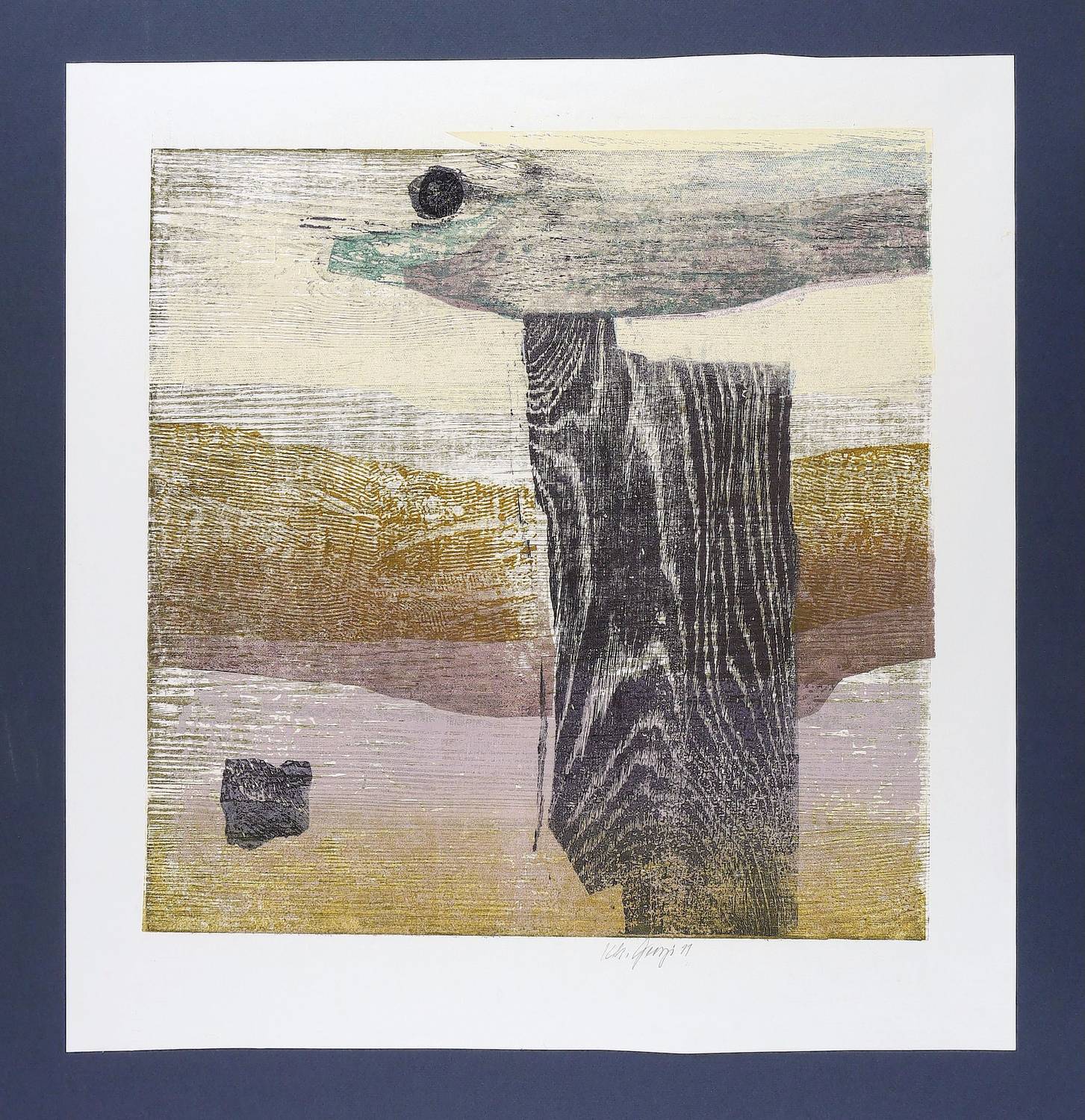 2011. Farbholzschnitt & Materialdruck, auf weißem Papier. – Originale Künstlergrafik, von Karlheinz Georgi. – Unikat. – 42,5 x 41,5 cm (Darstellung / Druckstock), 52 x 50 cm (Blatt).
