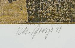 Karlheinz Georgi (*1934 Oberhohndorf bei Zwickau - 2019 Dresden). Deutscher Maler, Wandgestalter und Grafiker. 1948-50 Mal- und Zeichenschule in Zwickau bei Tatjana Lietz und Horst Michel. 1952-58 Architekturstudium an der TH Dresden. Hilfsassistent bei Georg Nerlich. 1962-90 diverse baugebundene Arbeiten, Wandgestaltungen, Orgelprospekte und Kirchenfenster u.a. in Dresden, Görlitz, Werl und Warschau. 1964-2011 Lehrauftrag für Malerei und Grafik sowie für Zeichnung und Druckgrafik an der TU Dresden. 1978 Promotion. 1990 Professor für Zeichnung und Architekturdarstellung, 1992 Institutsdirektor. 1992 Mitglied des Sächsischen Künstlerbundes. Die neben der Lehrtätigkeit immer betriebene freie grafische Arbeit nahm mit der Emeritierung 2000 neuen Raum ein.