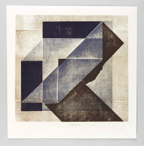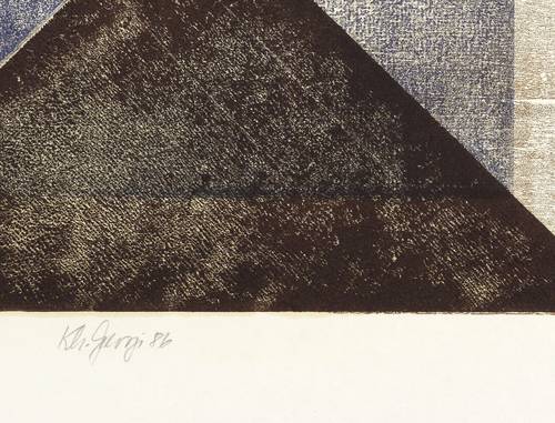 Unterhalb in Bleistift signiert und datiert: ″Kh. Georgi 86″. – Unikater Materialdruck mit auf Holz montierten gefalteten Platten in fein modulierten Farbnuancen. Hommage an die Werkgruppe der ″Faltungen″ vom 1987 verstorbenen Hermann Glöckner. – Vorzüglich erhalten. Sehr guter Zustand.