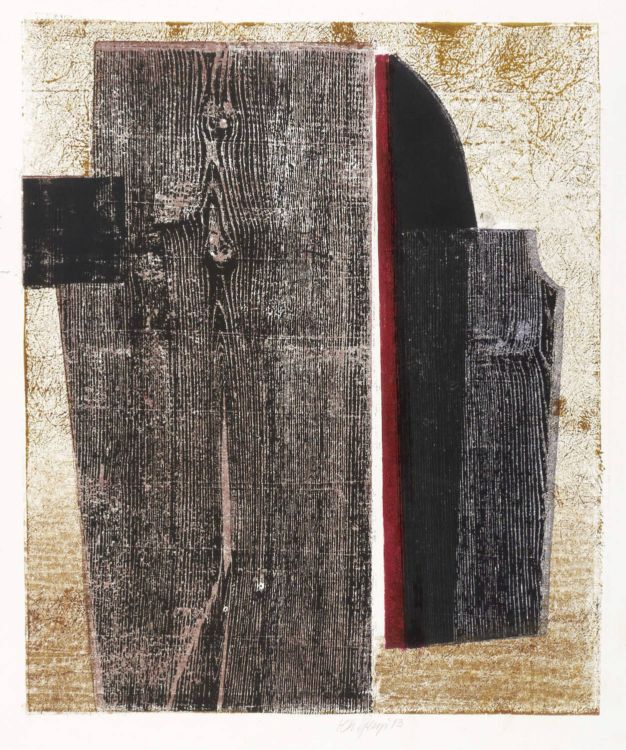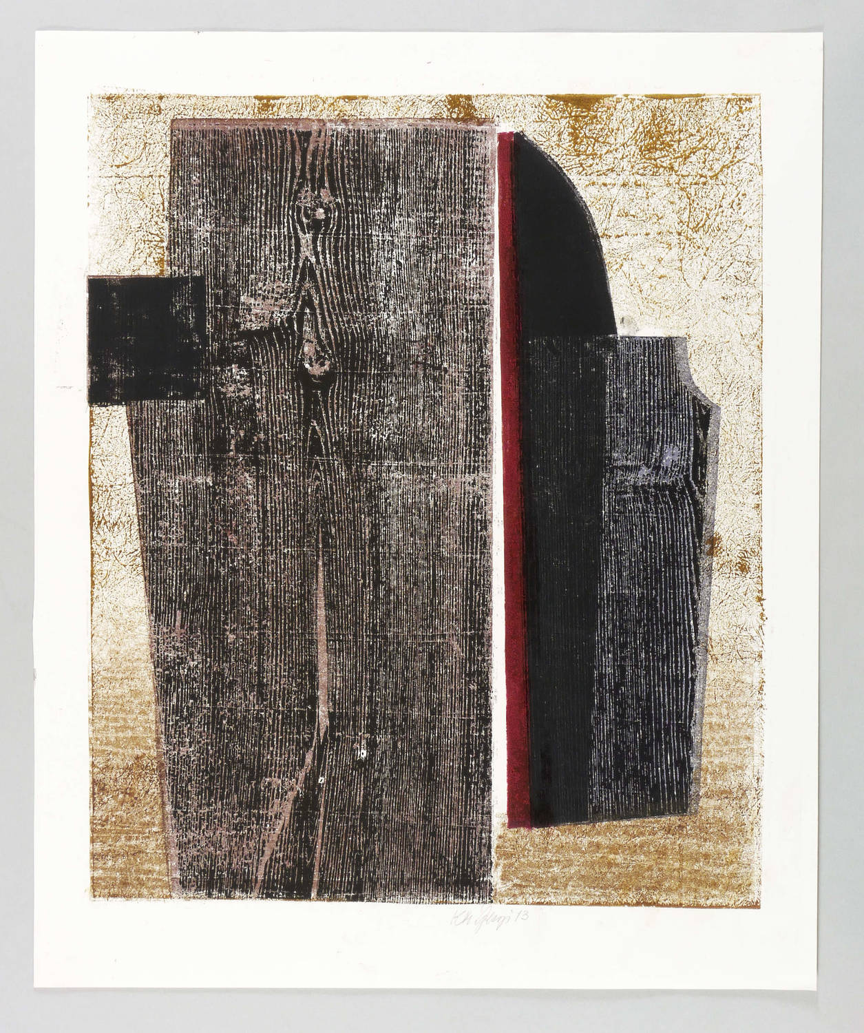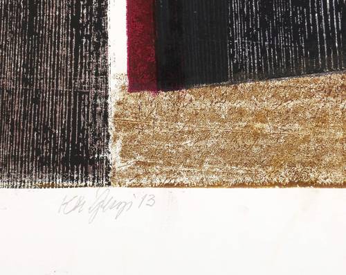 2013. Farbholzschnitt & Materialdruck, in 6 Farben, auf glattem weißem Velin. – Originale Künstlergrafik, von Karlheinz Georgi. – Auflage Exemplar Nr. 1/1 (Unikat). – 49,9 x 42,0 cm (Darstellung / Druckstock), 59 x 49 cm (Blatt).