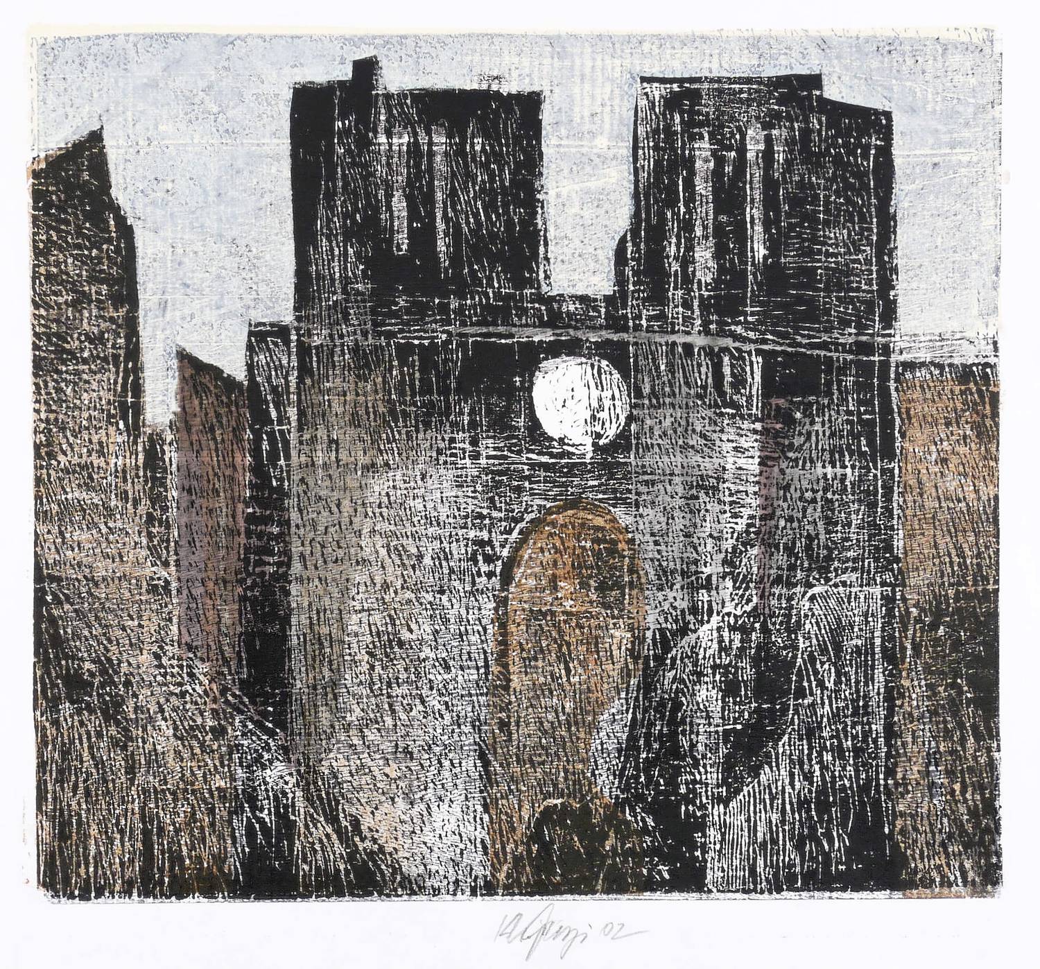 Unterhalb in Bleistift signiert und datiert: ″Kh. Georgi 02″. – Unikater Farbholzschnitt über Tonplatten in fein modulierten Farbnuancen. – Leichte Druckspuren im Rand. Sonst sehr guter Zustand.