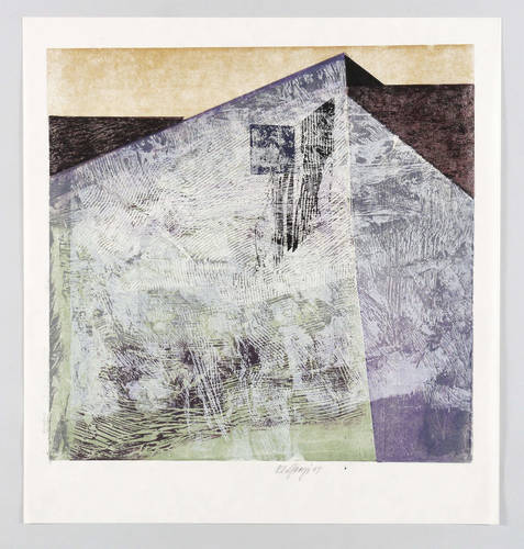 2004. Farbholzschnitt & Materialdruck, in 8 Farben, auf leichtem hellchamois Velin. – Originale Künstlergrafik, von Karlheinz Georgi. – Auflage Exemplar Nr. 1/1 (Unikat). – 43,8 x 44,8 cm (Darstellung / Druckbild), 54 x 50 cm (Blatt).