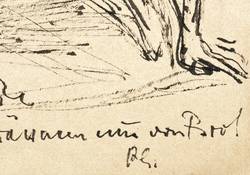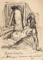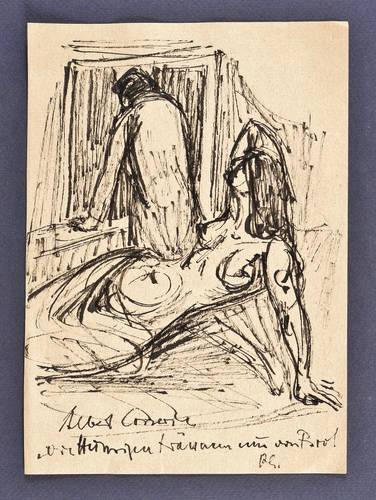 Um 1955. Zeichnung / Federzeichnung, in schwarzer Tusche, auf Maschinenbütten. – Originale Künstlergrafik, von Rudi Gruner. – Unikat. – 21,1 x 15,0 cm (Darstellung / Blatt).