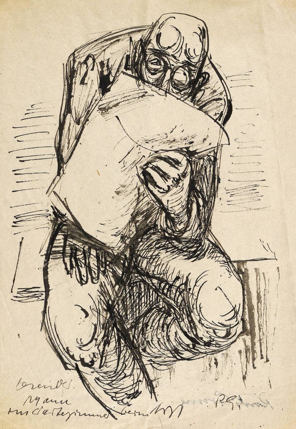 Um 1955. Zeichnung / Federzeichnung, in schwarzer Tusche, auf Papier. – Originale Künstlergrafik, von Rudi Gruner. – Unikat. – 21,9 x 15,4 cm (Darstellung / Blatt).