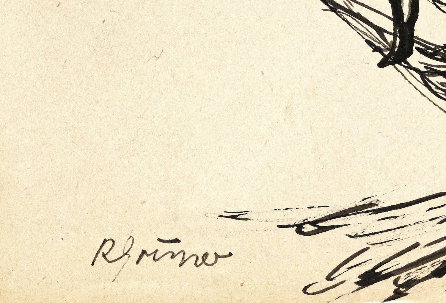 1950-1955. Zeichnung / Federzeichnung, in schwarzer Tusche, auf Papier. – Originale Künstlergrafik, von Rudi Gruner. – Unikat. – 21,0 x 14,7 cm (Darstellung / Blatt).