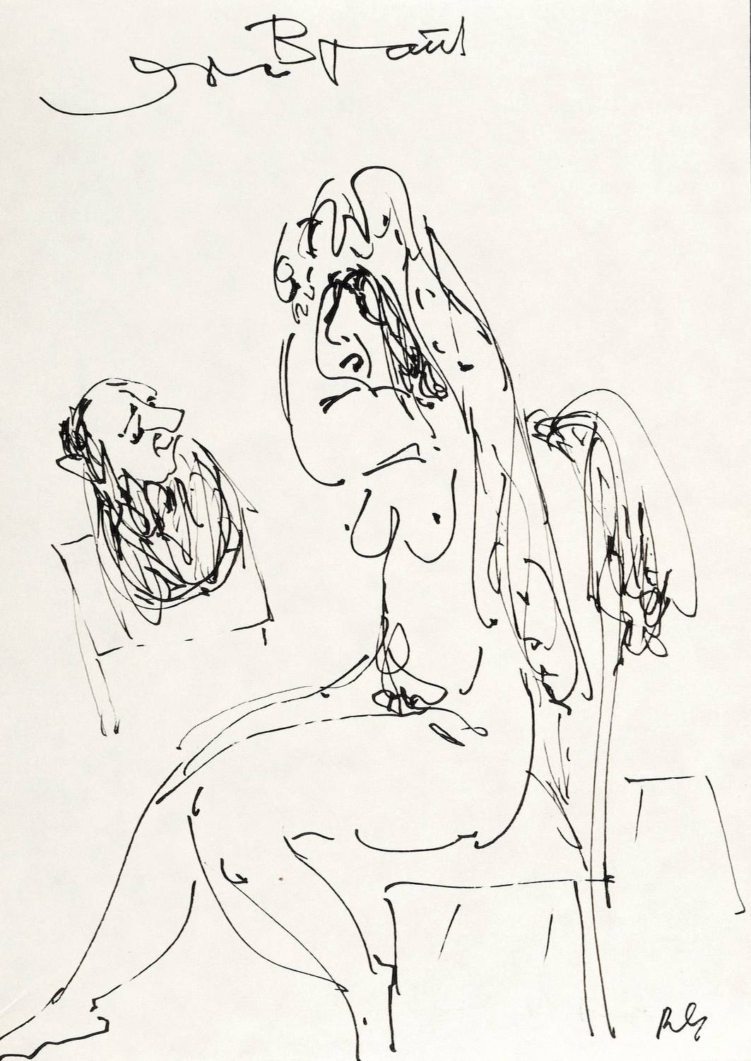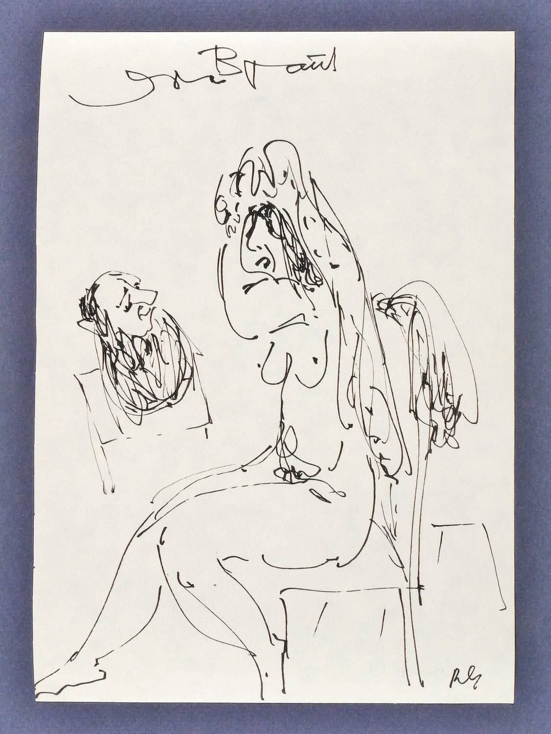 Um 1955. Zeichnung / Federzeichnung, in schwarzer Tusche, auf Papier. – Originale Künstlergrafik, von Rudi Gruner. – Unikat. – 20,4 x 14,5 cm (Darstellung / Blatt).