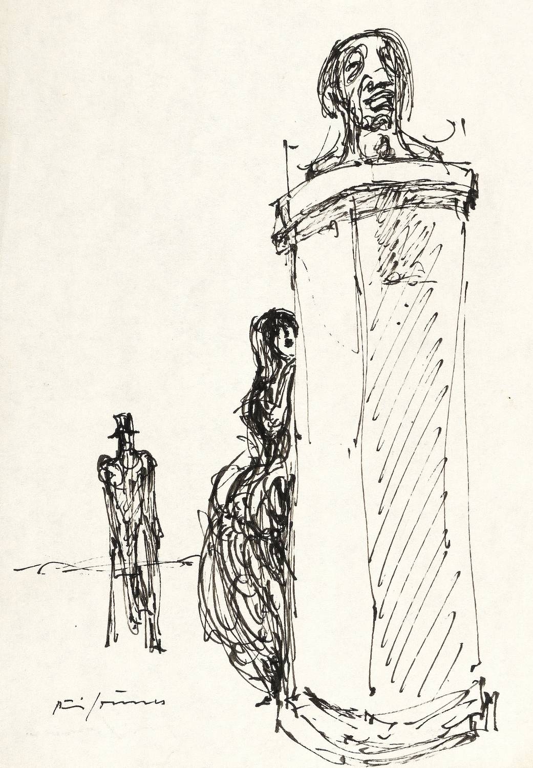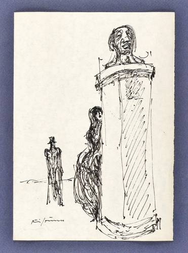 1950-1960. Zeichnung / Federzeichnung, in schwarzer Tusche, auf Papier. – Originale Künstlergrafik, von Rudi Gruner. – Unikat. – 21,1 x 14,8 cm (Darstellung / Blatt).