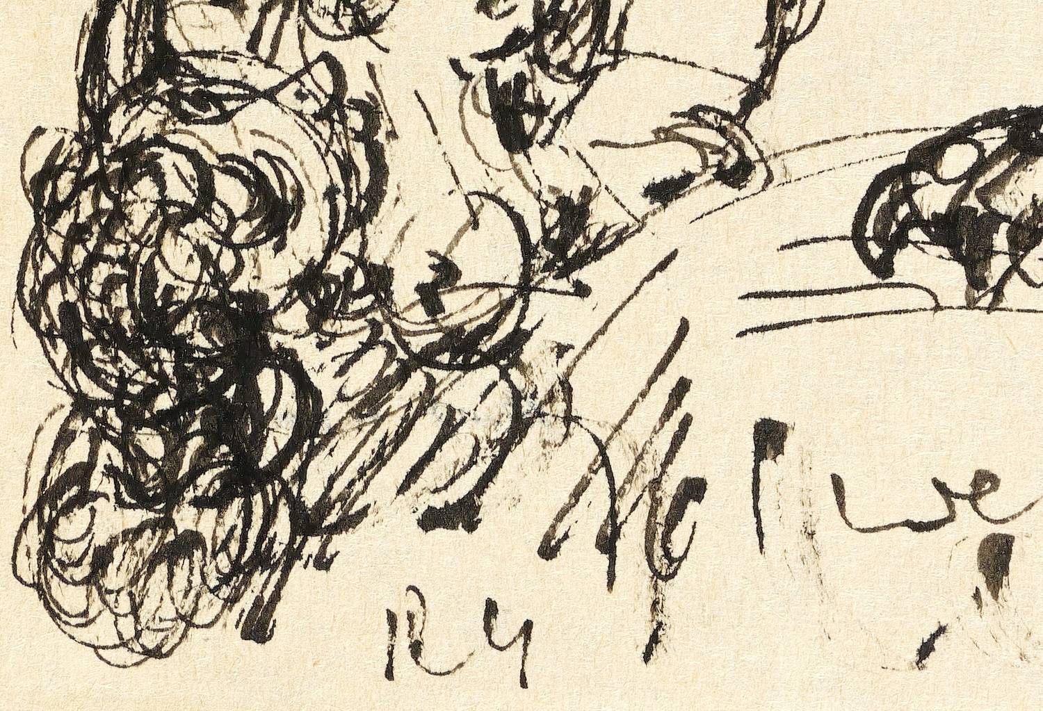 Um 1960. Zeichnung / Federzeichnung, in schwarzer Tusche, mit Pinsel überarbeitet, auf Papier. – Originale Künstlergrafik, von Rudi Gruner. – Unikat. – 20,9 x 14,7 cm (Darstellung / Blatt).