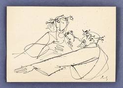 1953. Zeichnung / Federzeichnung, in schwarzer Tusche, auf gelblichem Maschinenbütten. – Originale Künstlergrafik, von Rudi Gruner. – Unikat. – 14,8 x 21,0 cm (Darstellung / Blatt).