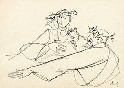 Rechts unten in schwarzer Feder mit Monogramm signiert. – Möglicherweise eine Karikatur auf den 1953 verstorbenen Schriftsteller Erich Weinert. – Minimal lagerspurig. Winziges Eselsohr links unten. Guter Zustand.