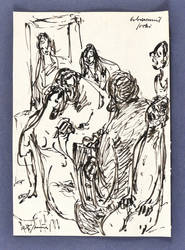 1950-1960. Zeichnung / Federzeichnung, in schwarzer Tusche, auf Papier. – Originale Künstlergrafik, von Rudi Gruner. – Unikat. – 21,1 x 14,7 cm (Darstellung / Blatt).