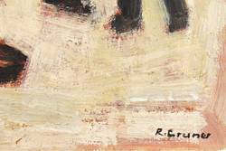 Rudi Gruner (1909 Chemnitz - 1984 Karl-Marx-Stadt). Deutscher Maler, Zeichner und Illustrator. 1924-28 Ausbildung zum Musterzeichner an der Fachschule für Textilindustrie Chemnitz. 1932 Heirat mit Charlotte Pannicke. 1932-37 arbeitslos, gelegentlich Aushilfe in einer Drogerie. Ab 1937 Wohnung und Atelier in der Bernsdorfer Straße in Chemnitz. 1939-44 als Werbegrafiker tätig (v.a. Kinoplakate). 1944/45 Kriegsdienst als Soldat. Seitdem freischaffend in Chemnitz tätig. Enger Kontakt zur Künstlergruppe Chemnitz mit Martha Schrag, Georg Gelbke und anderen. 1950 Mitglied Verband Bildender Künstler Deutschlands. In den 1950er und '60er Jahren zahlreiche Illustrationen zur Weltliteratur (z.B. "Das Leben des Lazarillo vom Tormes", Leipzig: Reclam 1961). 1984 Hans-Grundig-Medaille. Ausstellungen: 1939 und '43 Beteiligungen Chemnitzer Kunsthütte, 1985 Galerie Oben in Karl-Marx-Stadt, 1997 Beteiligung "Die großen Alten 2" Neue Sächsische Galerie (mit Wilhelm Rudolph, Hermann Glöckner und Otto Müller-Eibenstock), 1999 Galerie Borssenanger Chemnitz, 2009 Retrospektive zum 100. Geburtstag Verein Kunst für Chemnitz.