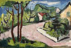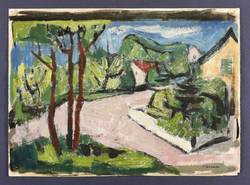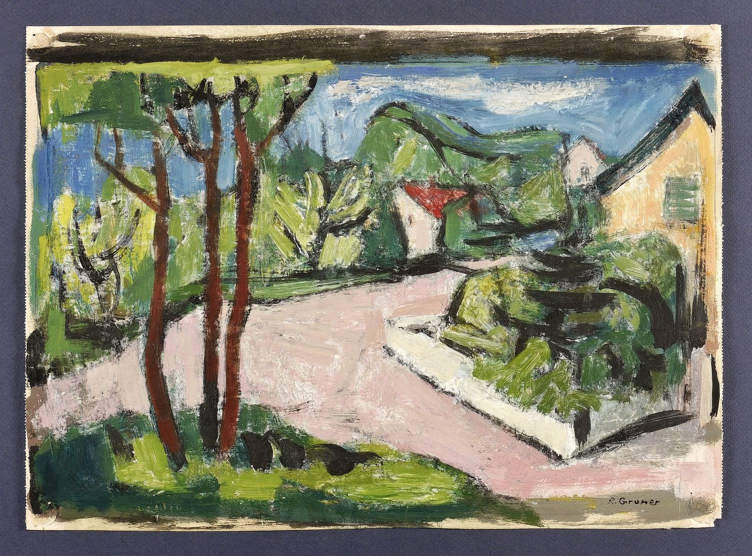 Um 1960. Zeichnung / Gouache, auf Karton. – Originale Künstlergrafik, von Rudi Gruner. – Unikat. – 29,0 x 40,0 cm (Darstellung), 30,5 x 42 cm (Blatt).