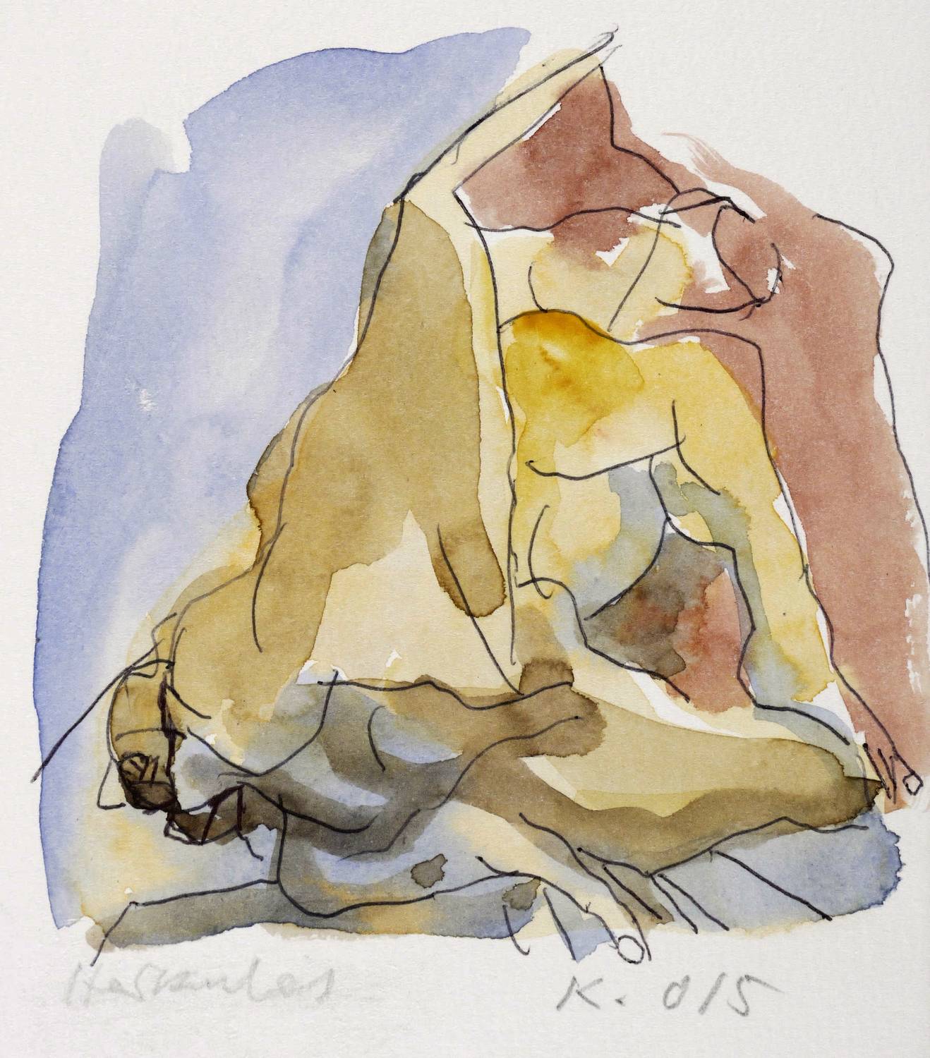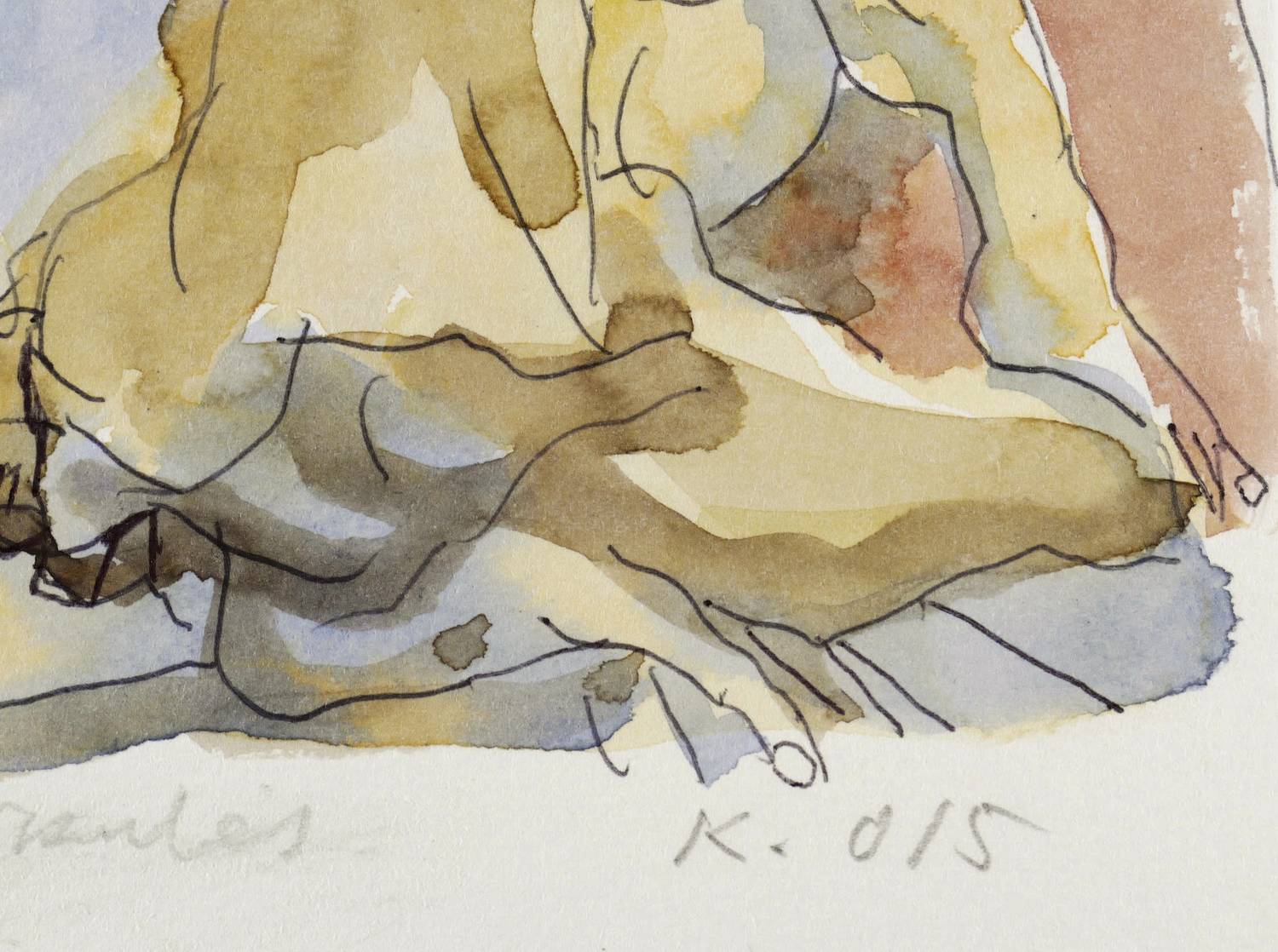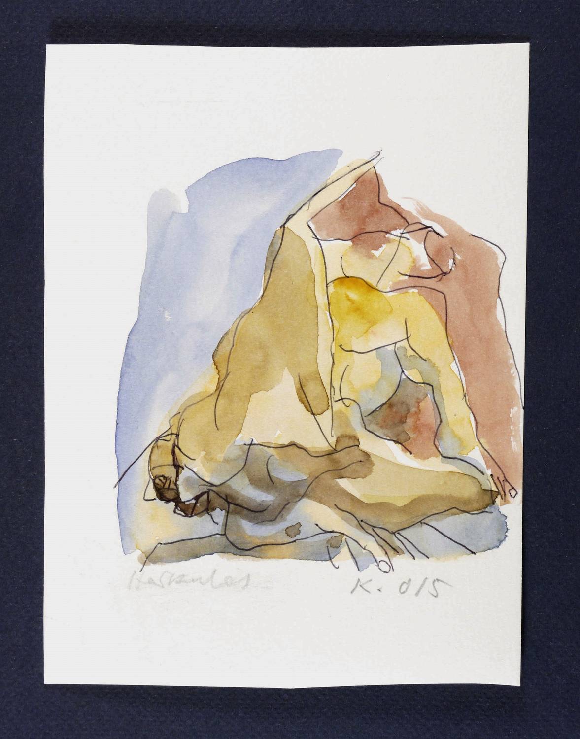 2015. Aquarell, über Kugelschreiber, auf weißem Karton. – Originale Künstlergrafik, von Rolf Kuhrt. – Unikat. – 12,0 x 11,5 cm (Darstellung), 17,5 x 13,5 cm (Blatt).