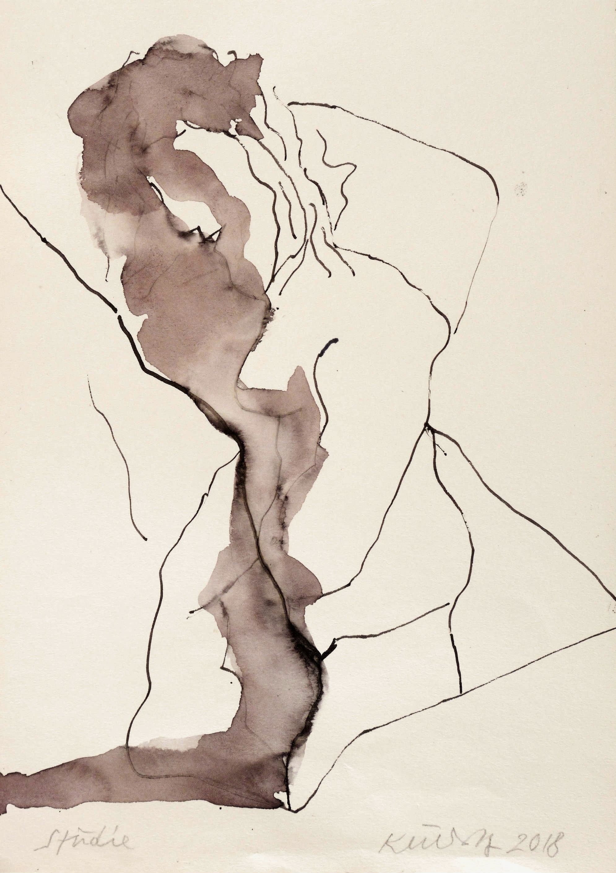 2018. Zeichnung / Federzeichnung, in schwarzer Tusche, braun laviert, auf chamois Papier. – Originale Künstlergrafik, von Rolf Kuhrt. – Unikat. – 19,5 x 15,8 cm (Darstellung), 24 x 16 cm (Blatt).